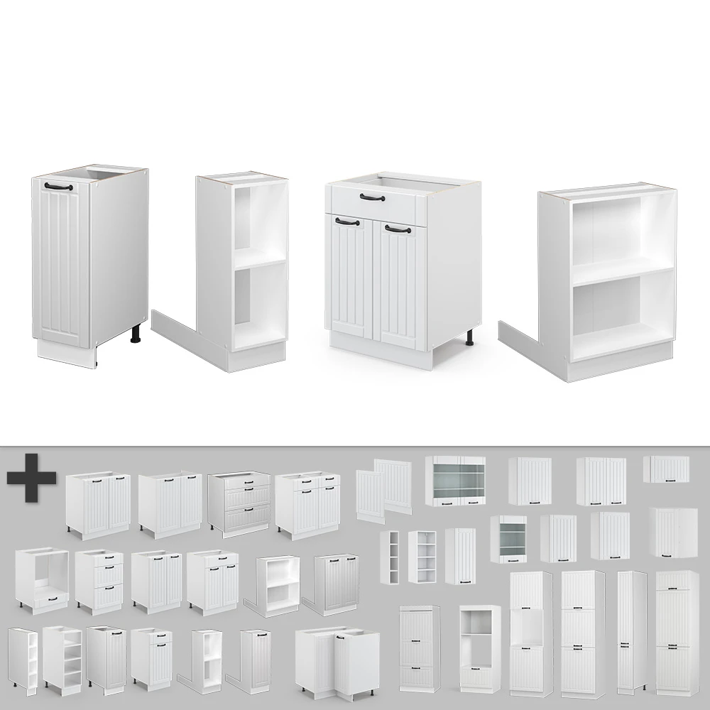 - MATERIAL: Die freistehenden Küchenmöbel besteht aus pflegeleichter Spanplatte 16 mm, mit einer Melaminharzbeschichtung. Alle Fronten der Kücheneinheiten sind aus hochwertigem MDF hergestellt.