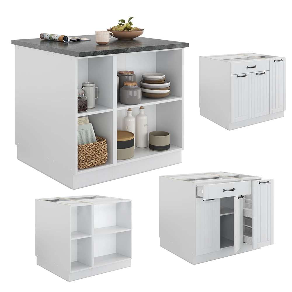 - LIEFERUMFANG: Kücheninsel (Sofern nicht anders angegeben, gehören die Arbeitsplatten, Elektrogeräte und Dekoration nicht zum Lieferumfang), Montageanleitung, Montagematerial