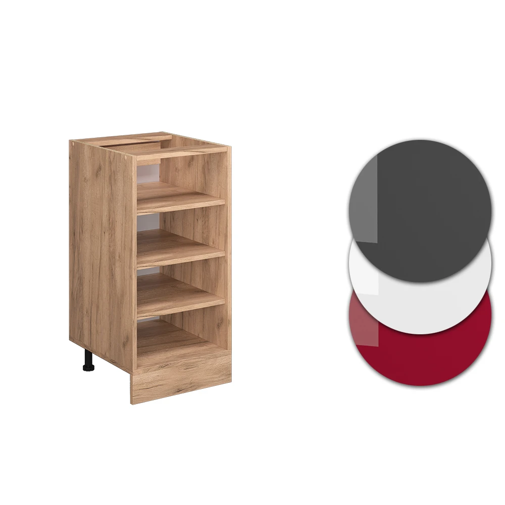 Das R-Line Küchenregal ist die Komplettlösung für Ihre Küche! Mit diesem Unter- und Küchenschrank schaffen Sie zusätzlichen Stauraum und Ordnung in Ihrer Küche. Das offene Design erlaubt es Ihnen, Ihre Küchenutensilien in greifbarer Nähe zu haben und sorgt für ein modernes Flair. Passend zu Ihrem individuellen Geschmack ist die Serie in verschiedenen Konfigurationen erhältlich und das Modul kann je nach Bedarf umgestellt werden. Zusätzliche Module können jederzeit hinzugefügt werden und die höhenverstellbaren Füße sorgen für eine optimale Anpassung an Ihre Küche. Bringen Sie Ihr Küchenambiente auf das nächste Level und schaffen Sie Platz für Ihre Kreativität!