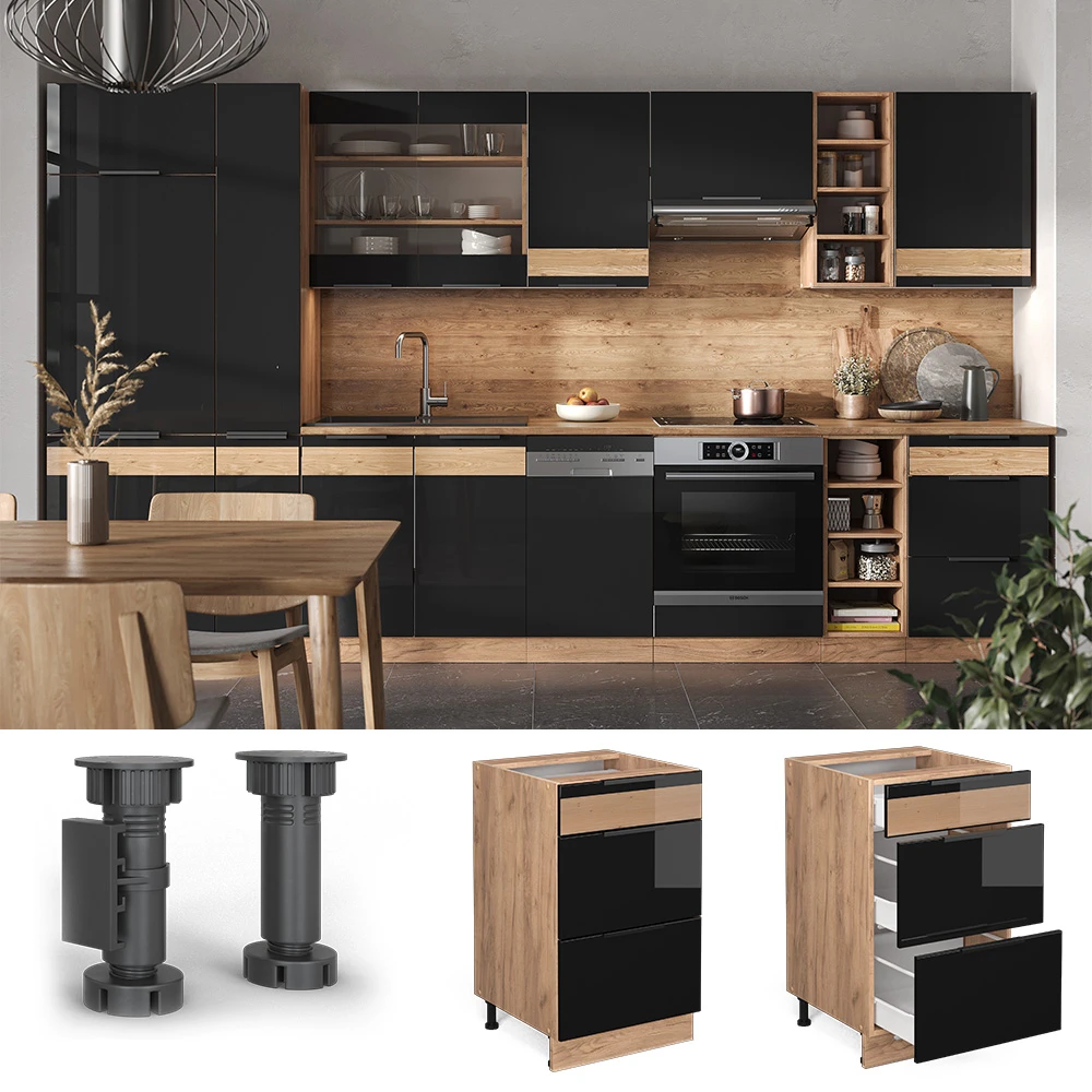 Der Fame-Line Küchenunterschrank ist ein absolutes Muss für jede gut ausgestattete Küche. Mit seinen Schubladen bietet er ausreichend Platz, um alle Kochutensilien praktisch und einfach zu verstauen. Das Küchenmöbelstück kommt in vielen verschiedenen Konfigurationen und kann nach Belieben umgestellt werden. Die MDF-Fronten und Soft-Close-Scharniere sorgen für ein hochwertiges und stilvolles Aussehen. Zusätzlich können weitere Module bezogen werden, um den Schrank individuell zu erweitern. Mit diesem Unterschrank wird jeder Kochspaß garantiert. Bestellen Sie noch heute Ihren Fame-Line Küchenunterschrank und erleben Sie Ihre Küche in einem neuen Glanz.