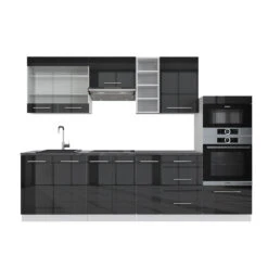 Die bequemen Softclose Scharniere bieten ein bequemes Handling und die hochwertigen Metalauszüge der Schubladen sorgen für eine lange Lebensdauer der Küchenmöbel. Die Schränke sind mit höhenverstellbaren Stellfüßen ausgestattet, dank denen sich Bodenunebenheiten mühelos ausgleichen lassen.