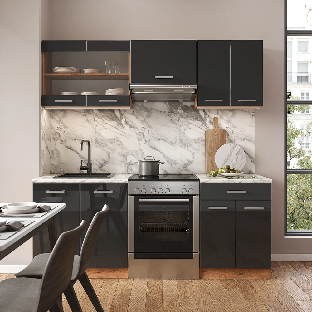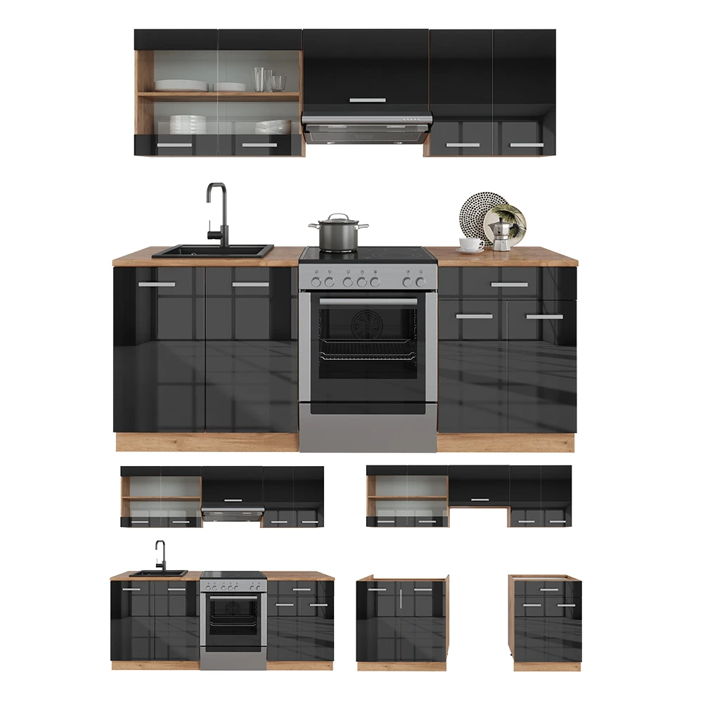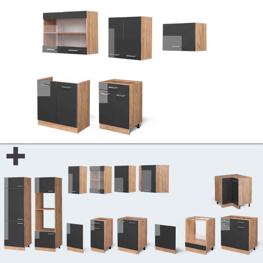 Die Küchenzeile der R-Line Serie ohne Arbeitsplatte ist die ideale Komplettlösung für Ihre Küche. Mit ihrem modernen Design und den höhenverstellbaren Füßen passt sie sich perfekt an Ihre Bedürfnisse an. Das Modul dieser Einbauküche ist nach Belieben umstellbar und zusätzliche Module können ganz einfach bezogen werden. Egal ob Sie einen kleinen oder großen Raum haben, die R-Line Serie ist in verschiedenen Konfigurationen erhältlich und bietet Ihnen somit die Freiheit, die perfekte Küche zu gestalten. Überzeugen Sie sich von der Qualität dieser Küchenmöbel und schaffen Sie sich Ihren Traum von einer perfekten Küche.