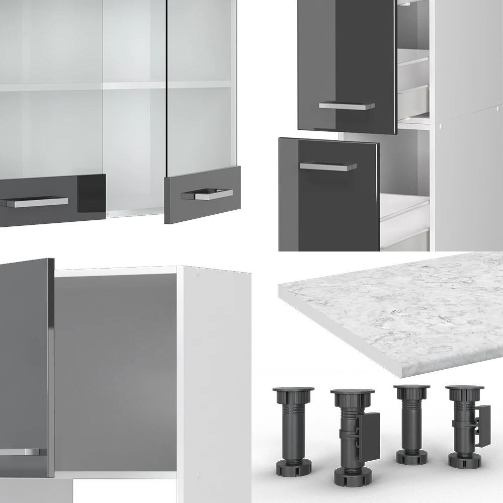 Die R-Line Küchenzeile ist die ideale Lösung für eine perfekt ausgestattete Küche. Mit ihrer modularen Bauweise können Sie das System nach Belieben umstellen und an Ihre Bedürfnisse anpassen. Durch zusätzliche Module können Sie die Küchenzeile erweitern und so noch mehr Stauraum schaffen. Die höhenverstellbaren Füße sorgen dafür, dass die Küchenzeile jederzeit perfekt auf Ihre Körpergröße angepasst werden kann. Das R-Line Küchen-Set fügt sich perfekt in das Design Ihrer bereits vorhandenen Küche ein. Diese Komplettlösung für Ihre Küche wird Sie nicht nur durch ihre Funktionalität, sondern auch durch ihr modernes und ansprechendes Design begeistern. Holen Sie sich jetzt Ihre Lieblingsfarbe und starten Sie mit Ihrer neuen R-Line Küchenzeile in ein kulinarisches Abenteuer!