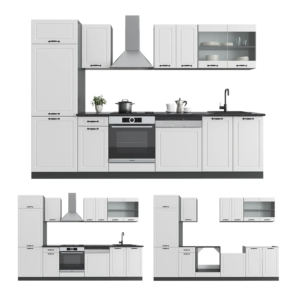 Die R-Line Küchenzeile ist die ideale Lösung für jeden Haushalt. Der Küchenblock bietet ausreichend Stauraum und ist in verschiedenen Konfigurationen erhältlich. Die Module können beliebig umgestellt werden, um den individuellen Bedürfnissen gerecht zu werden. Zusätzliche Module können jederzeit bezogen werden, um die Küche zu erweitern. Die höhenverstellbaren Füße sorgen für die perfekte Anpassung an die Gegebenheiten und somit für eine optimale Arbeitsfläche. Mit dieser Komplettlösung für die Küche wird Kochen und Backen zum wahren Vergnügen!