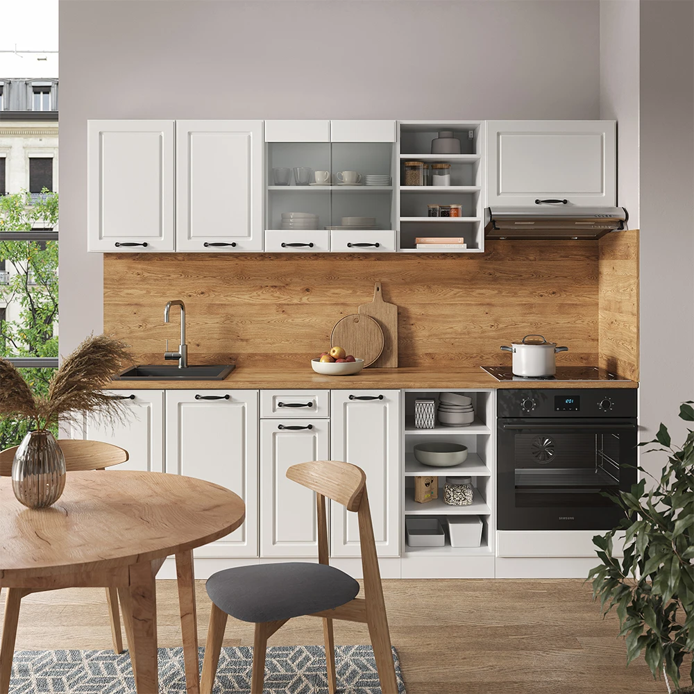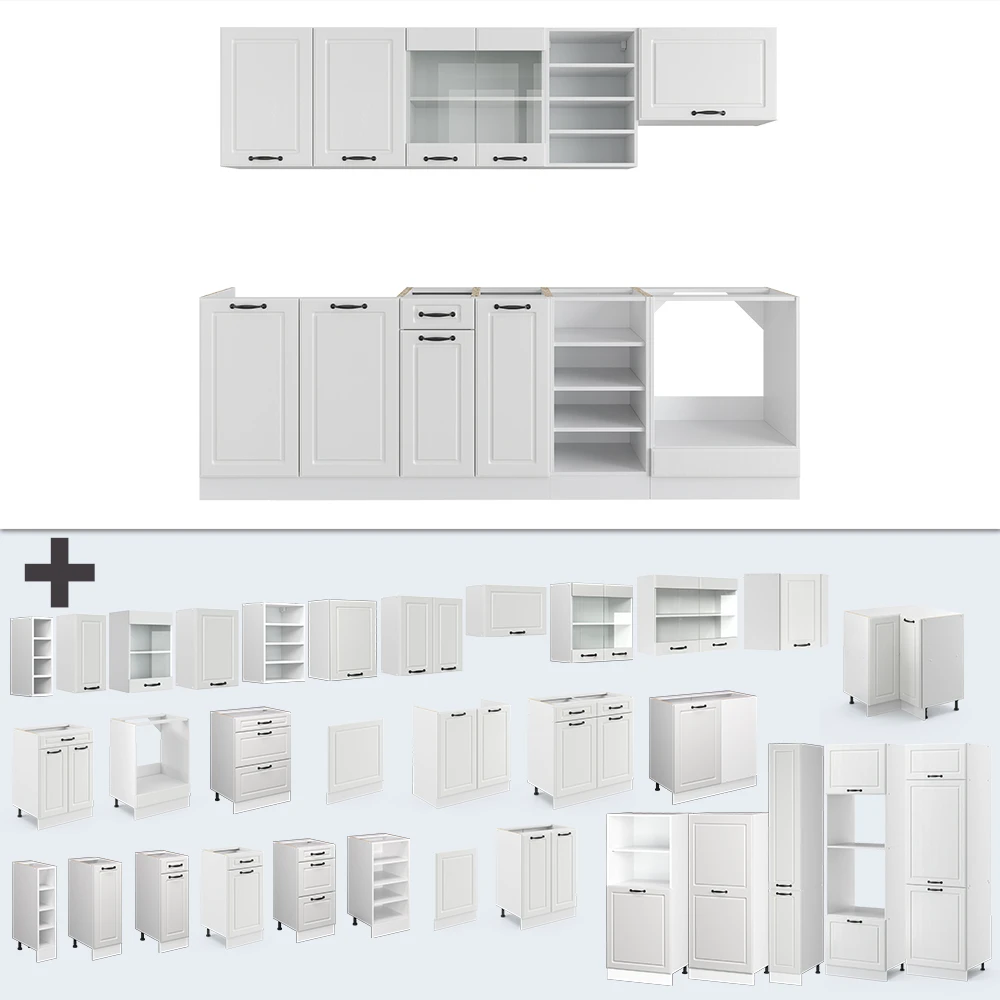 Die R-Line Küchenzeile (ohne Arbeitsplatte) ist der Inbegriff einer Komplettlösung für Ihre Küche. Mit diesem Küchenblock erhalten Sie Küchenmöbel, Einbauküche und Komplettküche in einem, alles zu einem unschlagbaren Preis-Leistungs-Verhältnis. Der Clou: Sie können die Module nach Belieben umstellen und so Ihre Küche individuell gestalten! Zusätzliche Module können ebenfalls bezogen werden, damit Ihre Küche für Ihre Bedürfnisse perfekt ausgestattet ist. Die höhenverstellbaren Füße machen den Aufbau und die Ausrichtung kinderleicht und sorgen dafür, dass die Küchenzeile auch auf unebenen Böden stabil steht. Werten Sie Ihre Küche auf und genießen Sie das Kochen und Essen in dieser perfekten Komplettlösung, die Ihnen Zeit und Nerven spart!