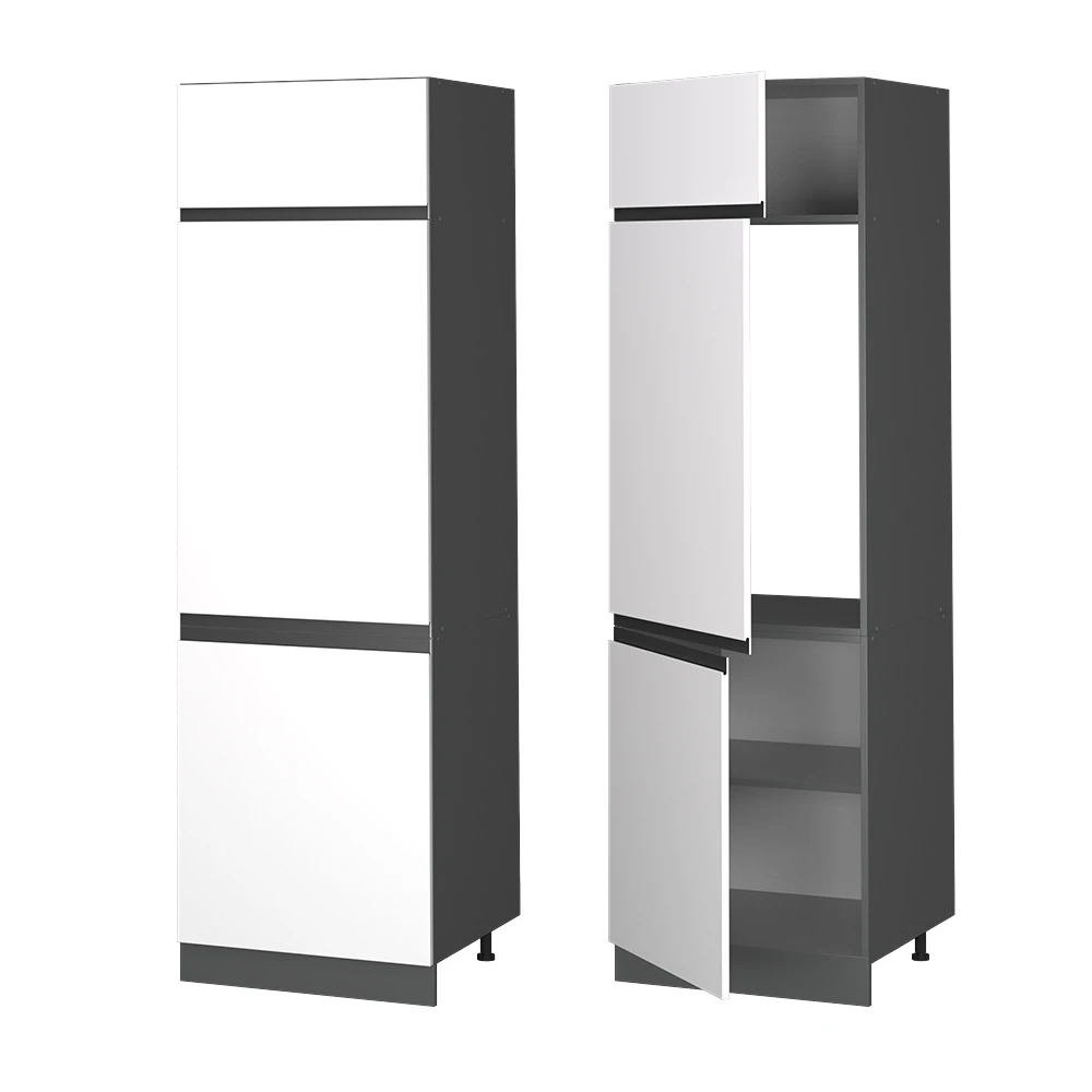 - MAßE: Der Küchenschrank für den Kühlschrank hat eine Breite von 60 cm, eine Höhe von 207 cm und eine Tiefe von 57,2 cm. Alle detaillierten Größen sind auf den Fotos angegeben.