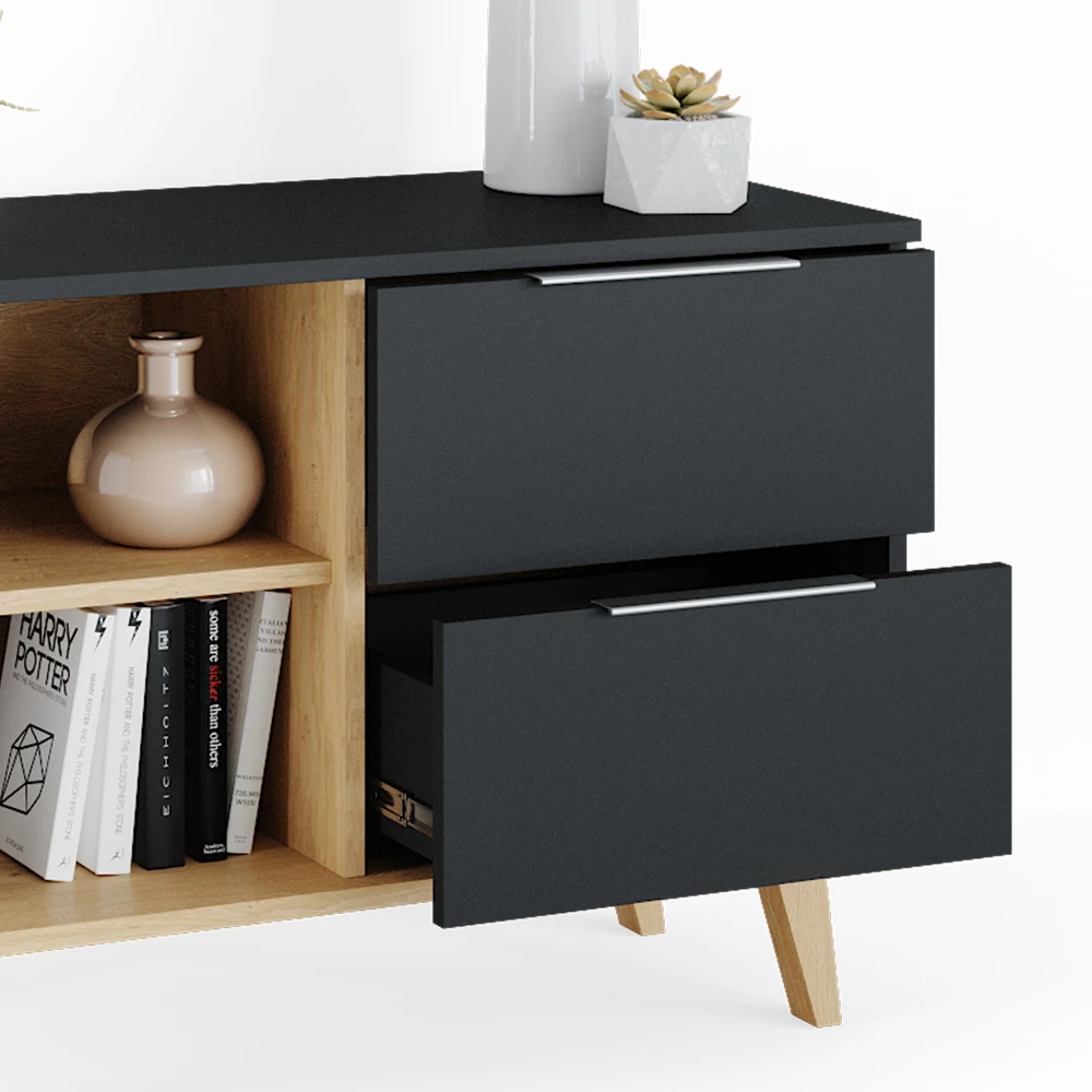 - MATERIAL: Das TV-Board besteht aus pflegeleichter Spanplatte 16 mm, mit einer Melaminharzbeschichtung.