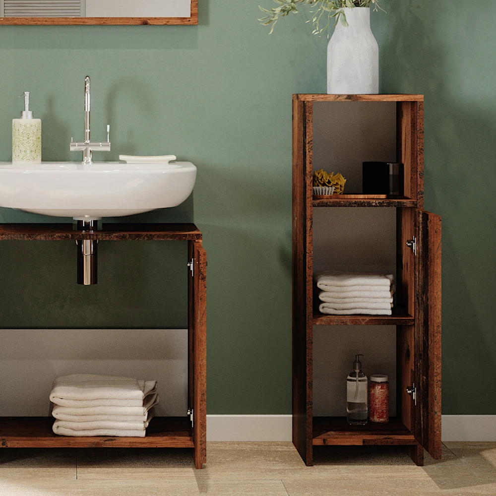 - MATERIAL: Der Badschrank besteht aus pflegeleichter Spanplatte 16 mm, mit einer Melaminharzbeschichtung.