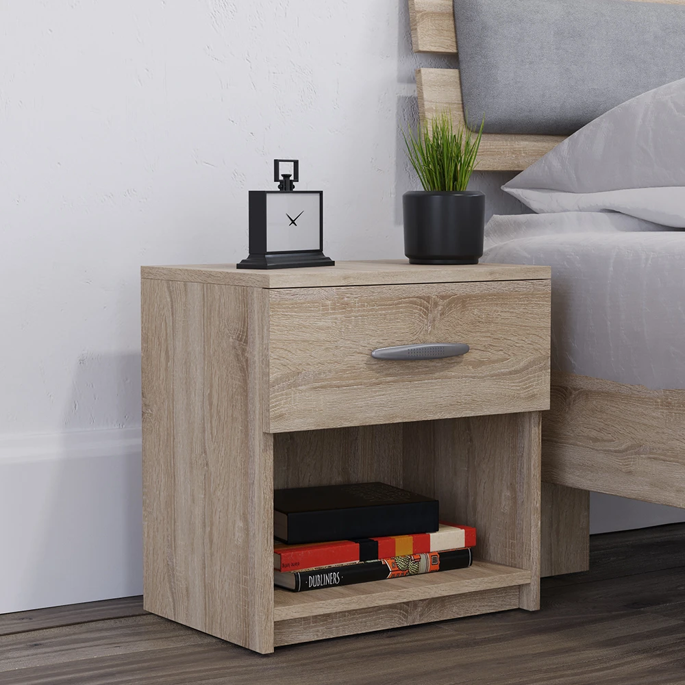 Der Nachttisch Pepe ist ein Schmuckstück für jedes Schlafzimmer und bietet eine ideale Lösung, um wichtige Dinge in der Nähe des Bettes aufzubewahren. Mit seinem einfachen Design passt der Nachtschrank perfekt in jedes Raumambiente. Das offene Fach ist perfekt für Bücher, Magazine oder andere kleine Gegenstände. Die Schublade bietet zusätzlichen Platz und die kompakte Größe des Produkts ist ideal, um es in kleinen Räumen zu nutzen. Nachttisch Pepe ist Teil einer ganzen Serie von hochwertigen Nachtschränken und -kommoden und bietet somit eine breite Auswahl. Der Beistelltisch ist mehr als nur ein Möbelstück, es ist ein Statement und eine Erinnerung daran, dass man sich um sich selbst kümmern sollte. Gönnen Sie sich diesen unverzichtbaren Begleiter für Ihre Nächte und genießen Sie erholsamen Schlaf.