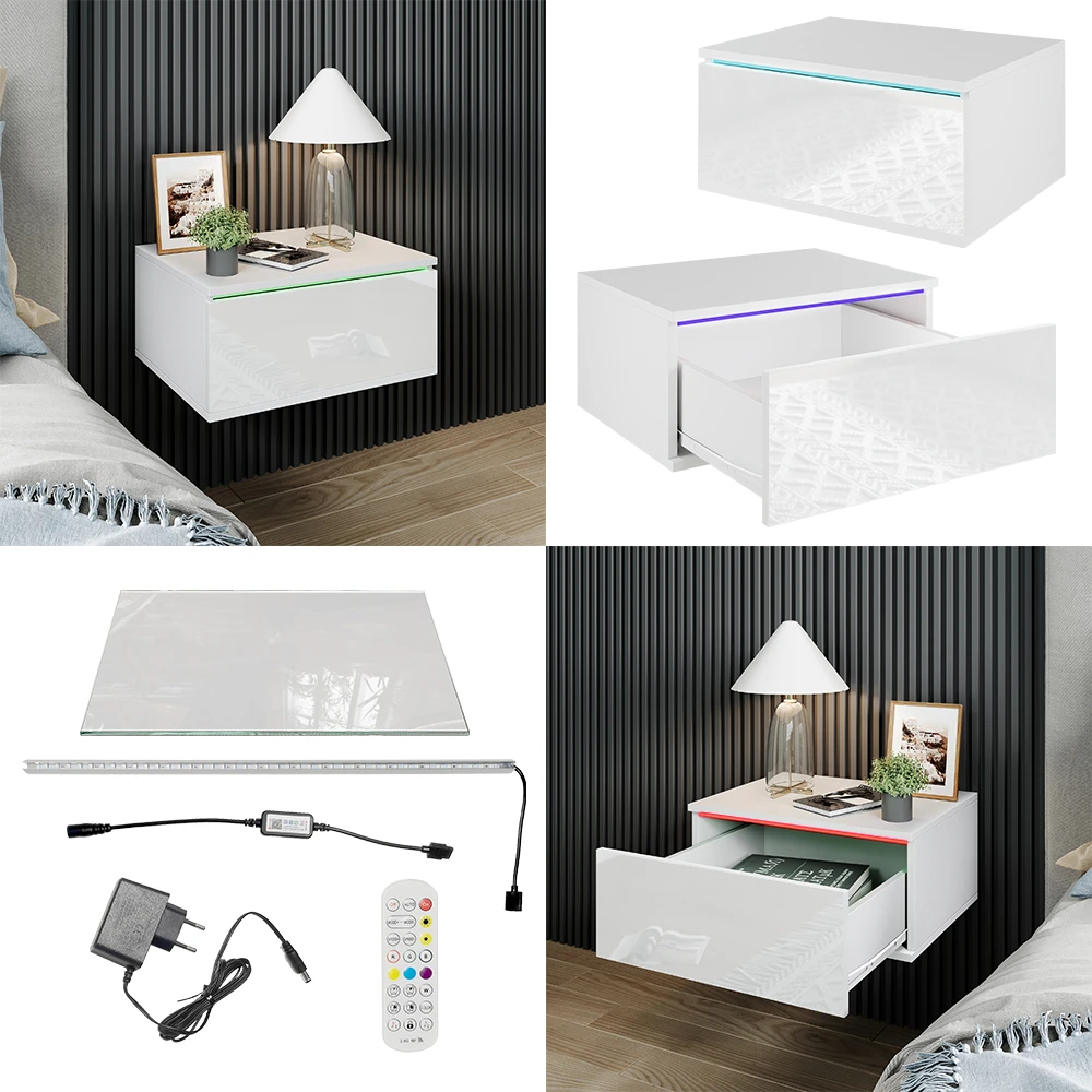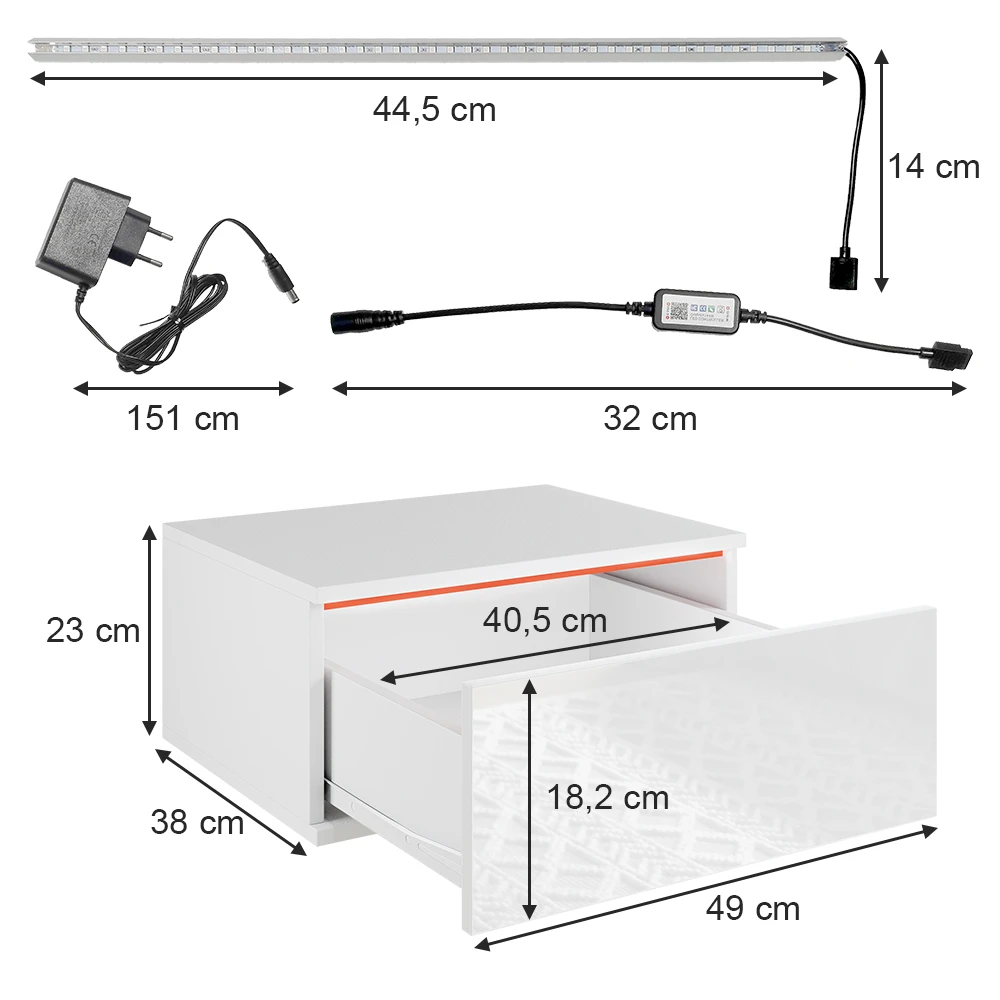 Nachttisch „Samira“ Weiß 49 X 23 Cm Mit LED Beleuchtung Vicco