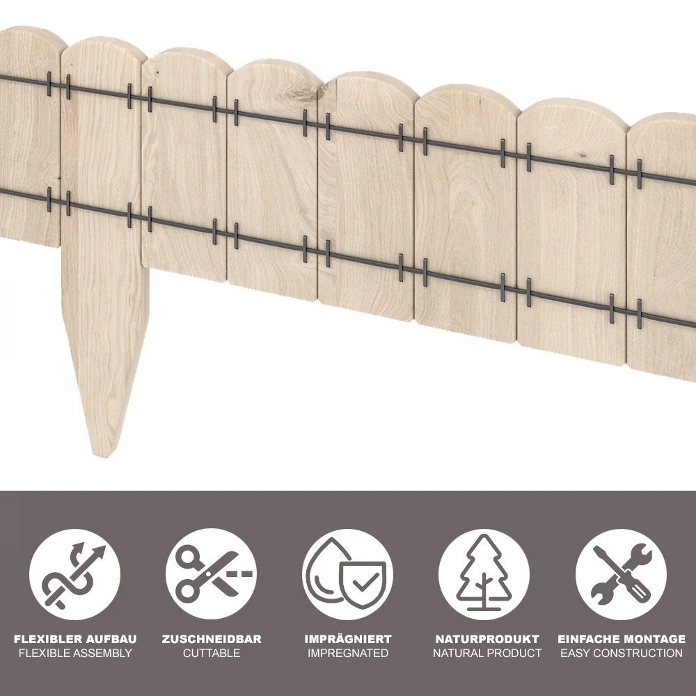 - MAßE: Die Beeteinfassung hat folgende Abmessungen: Breite: 203 cm, Höhe: 10 cm, Tiefe: 1,4 cm. Alle detaillierten Größen sind auf den Fotos angegeben.