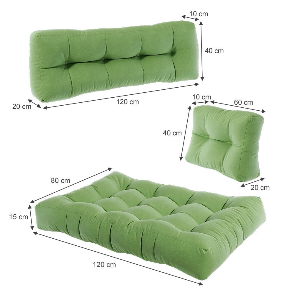 Mit dem Palettenkissen Set aus Flocken können Sie Ihre Palettenmöbel im Handumdrehen in eine bequeme und attraktive Sitzgelegenheit verwandeln. Egal ob drinnen oder draußen, das Set bietet die perfekte Lösung für alle, die es gemütlich mögen und auf der Suche nach einer unkomplizierten Gestaltungsmöglichkeit für ihr Palettensofa sind. Das Set besteht aus 3 Teilen und ist sehr weich und langlebig. Einmal auf dem Palettensofa platziert, wird es zum neuen Lieblingsplatz für gemütliche Abende oder entspannte Stunden im Freien. Machen Sie Ihre Palettenmöbel zum Hingucker und entscheiden Sie sich für das Palettenkissen Set aus Flocken!
