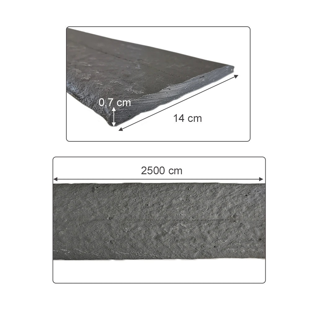 - MAßE: Die Beeteinfassung hat eine Breite von 100 cm, eine Höhe von 14 cm und eine Tiefe von 0,7 cm. Alle detaillierten Größen sind auf den Fotos angegeben.