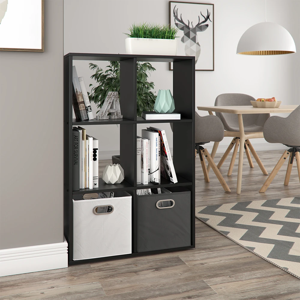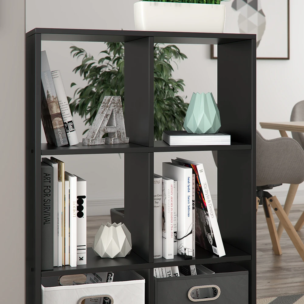 - Dieses stehende Bücherregal bietet 6 offene Ablageflächenund Ablagen für 30×30 Kartons und sorgt somit für reichlich Stauraum.