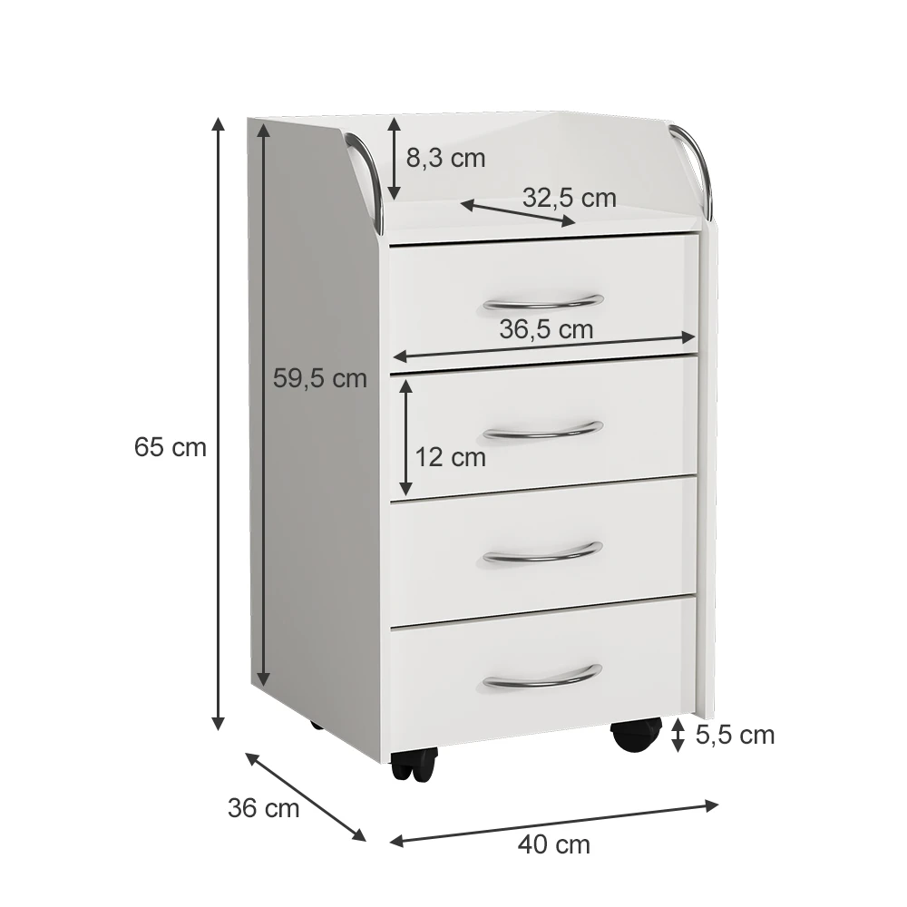 Mit 4 leichtgängigen Schubladen und einer zusätzlichen Ablage bietet der Rollcontainer eine optimale Organisation und Stauraum für Ihre Utensilien. Dank der 4 Schwenkräder lässt sich der Rollcontainer mühelos bewegen und flexibel am Arbeitsplatz platzieren. Die schlichte Optik des Rollcontainers fügt sich nahtlos in jede Büroumgebung ein und sorgt für eine elegante und aufgeräumte Atmosphäre. Mit seinem modernen Design ist der Rollcontainer nicht nur funktional, sondern auch ein stilvolles Möbelstück, das den Arbeitsplatz aufwertet.