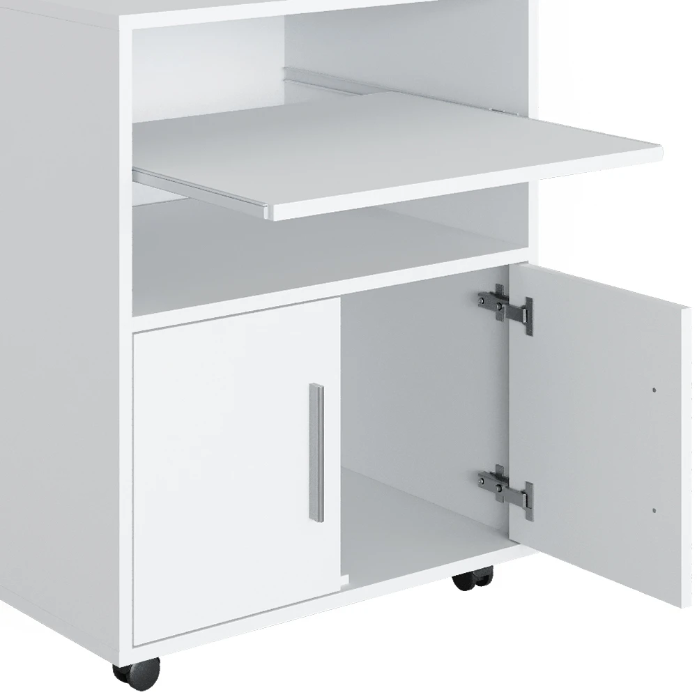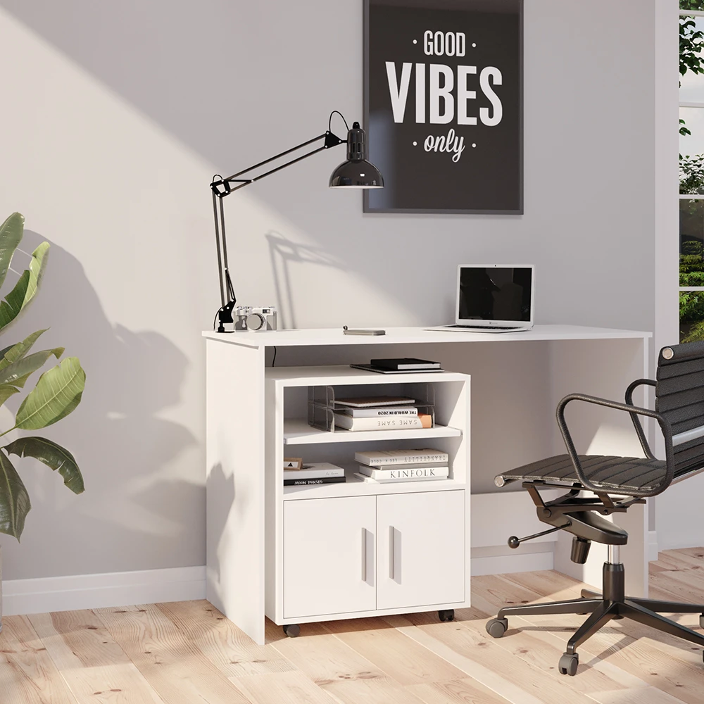 - Der Arbeitstisch für das Büro bietet offene und geschlossene Ablagen sowie Laufrollen. Er eignet sich perfekt für den Einsatz im Büro und zu Hause.