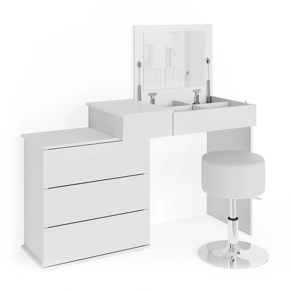- Der Kosmetiktisch mit Spiegel Lotos, Weiß bietet zahlreiche geschlossene Ablagen und eine Shuhlada für perfekte Aufbewahrung.