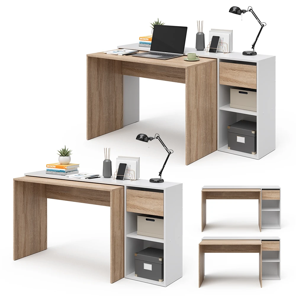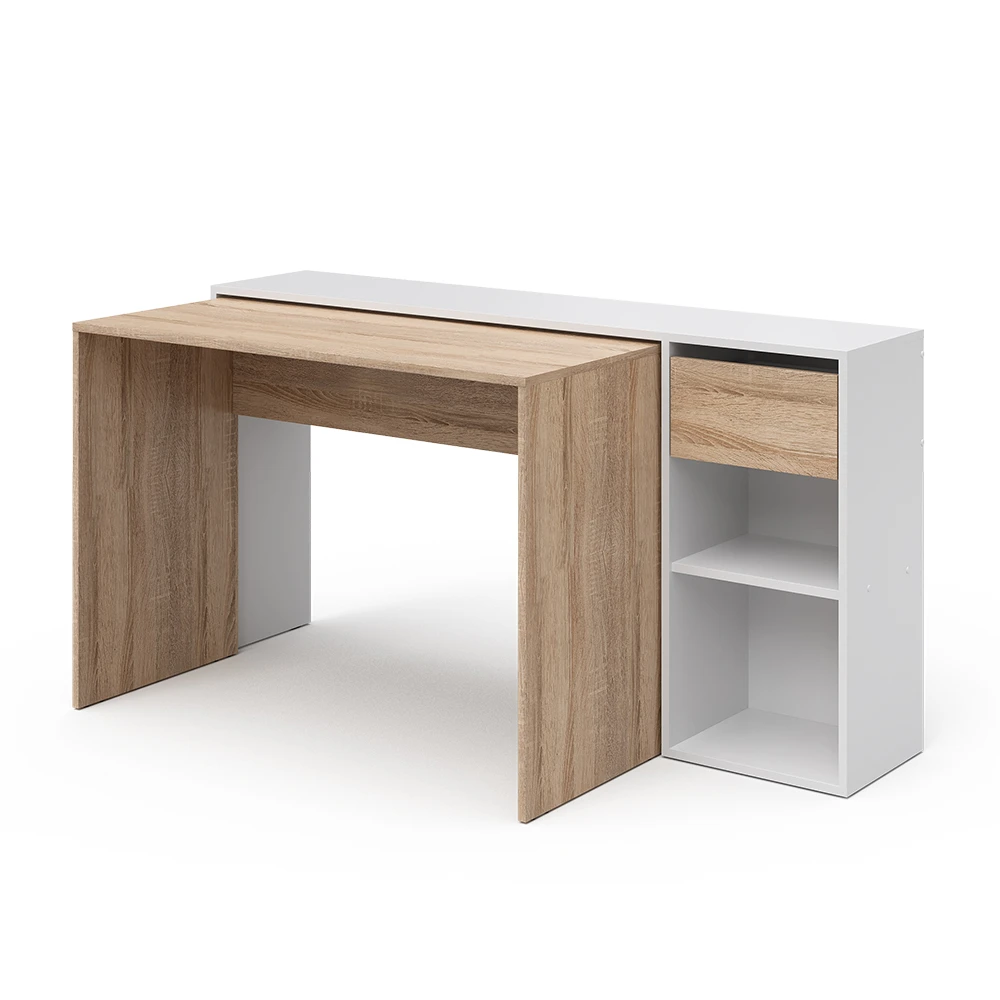 - Der Arbeitstisch für das Büro bietet mit einer ausziehbaren Schublade und zwei offenen Fächern viel Stauraum und einen bequemen Arbeitsplatz.