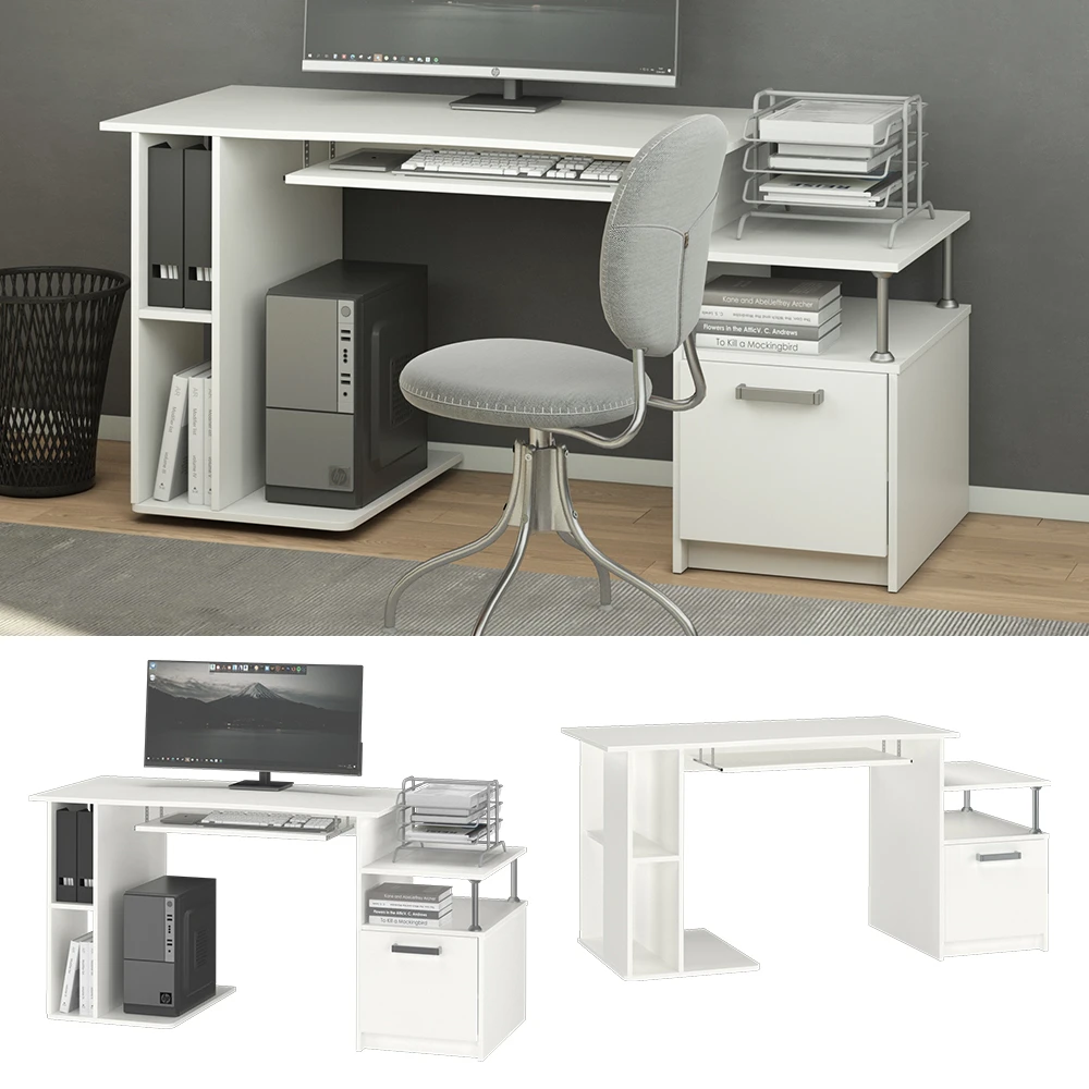 - MAßE: Der Bürotisch mit Stauraum hat folgende Abmessungen: Breite: 150 cm, Höhe: 73 cm, Tiefe: 60,2 cm. Alle detaillierten Größen sind auf den Fotos angegeben.