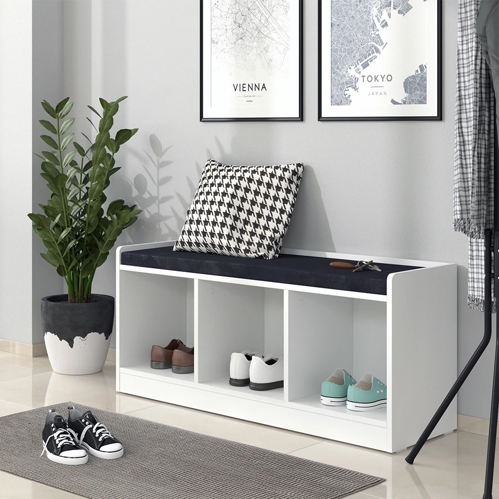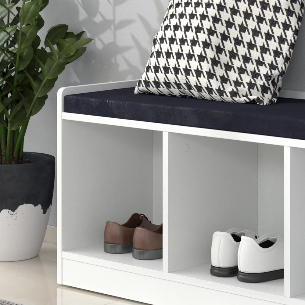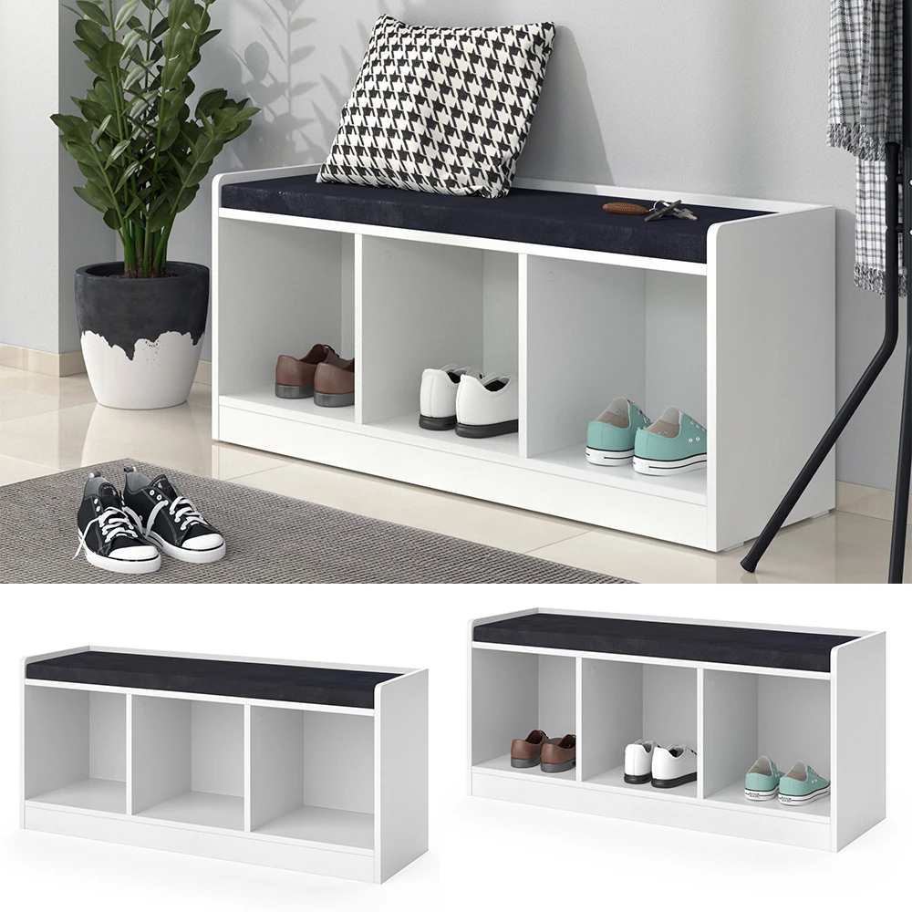 - Die Sitzbank mit Stauraum bietet einen gepolsterten Sitz und 3 praktische Ablagefächer für platzsparenden Stauraum.