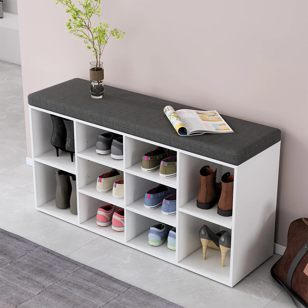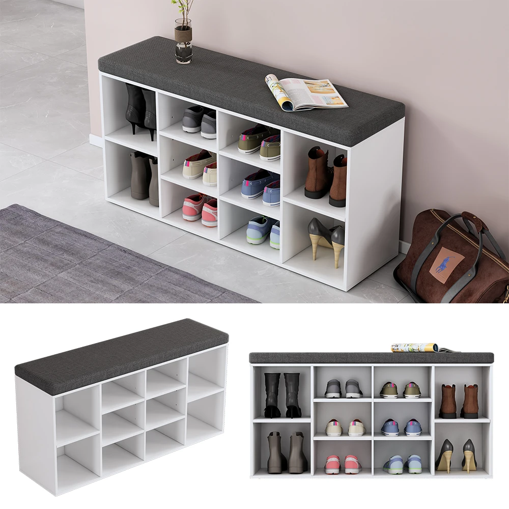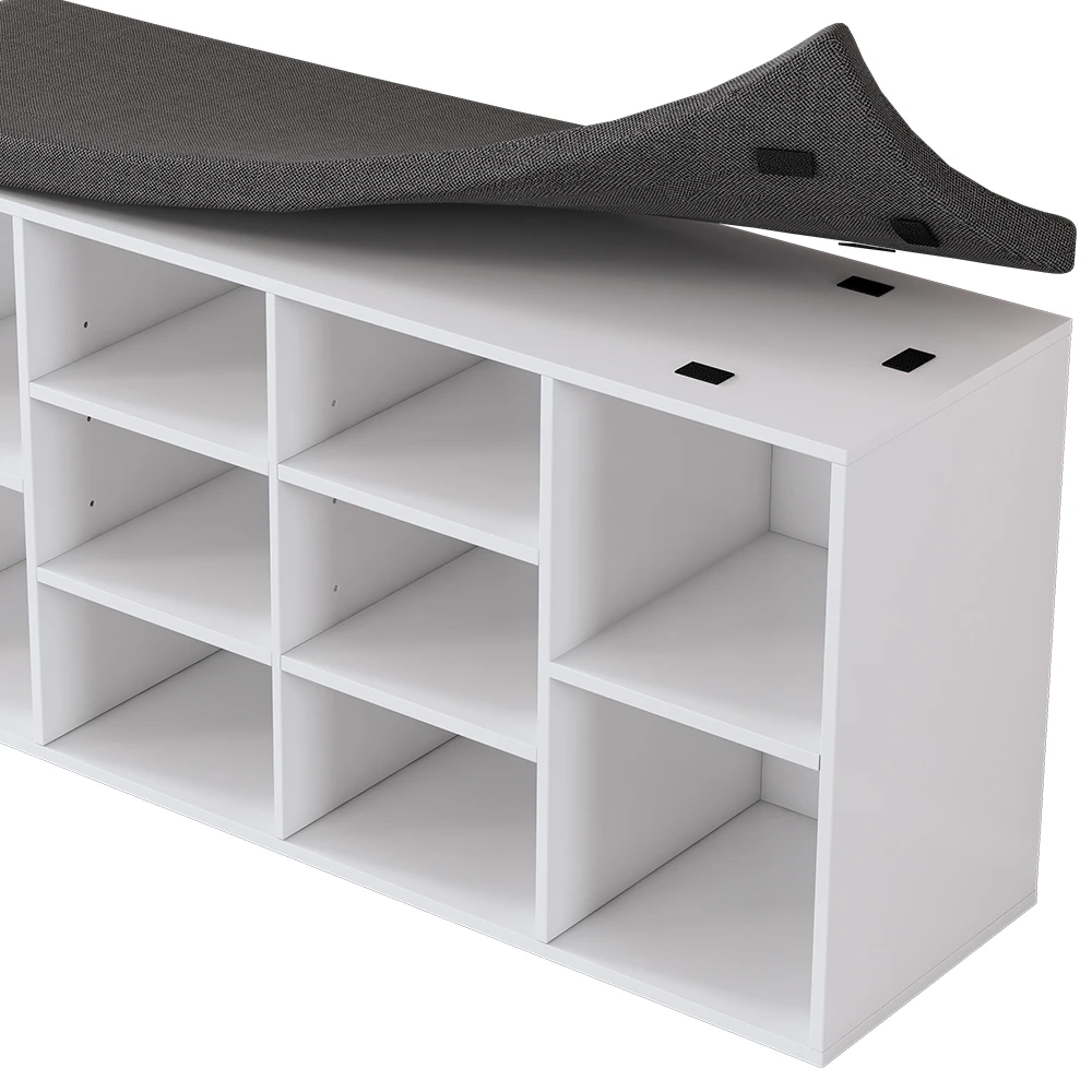 - Mit der schlichten Optik fügt sich das moderne Design des Schuhregals perfekt in jeden Raum ein. Die Schuhbank mit Auflage ermöglicht eine platzsparende und ordentliche Aufbewahrung Ihrer Schuhe.