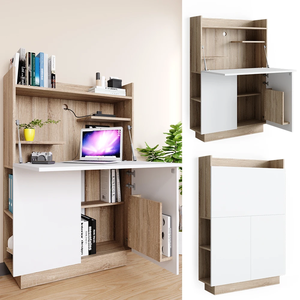 - MAßE: Der Bürotisch mit Stauraum hat eine Breite von 85 cm, eine Höhe von 118,9 cm und eine Tiefe von 27 cm. Alle detaillierten Größen sind auf den Fotos angegeben.