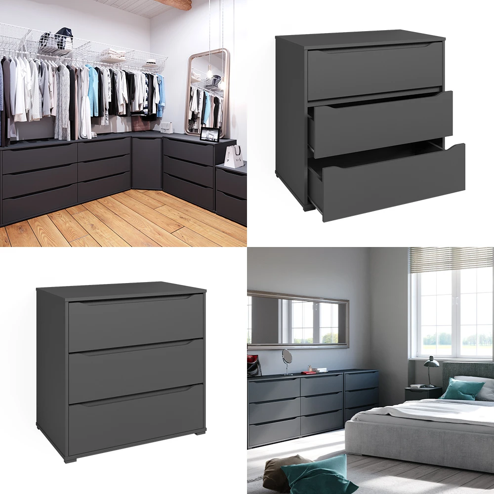 - MATERIAL: Der Schubladenschrank für das Schlafzimmer besteht aus pflegeleichter Spanplatte 16 mm, mit einer Melaminharzbeschichtung.