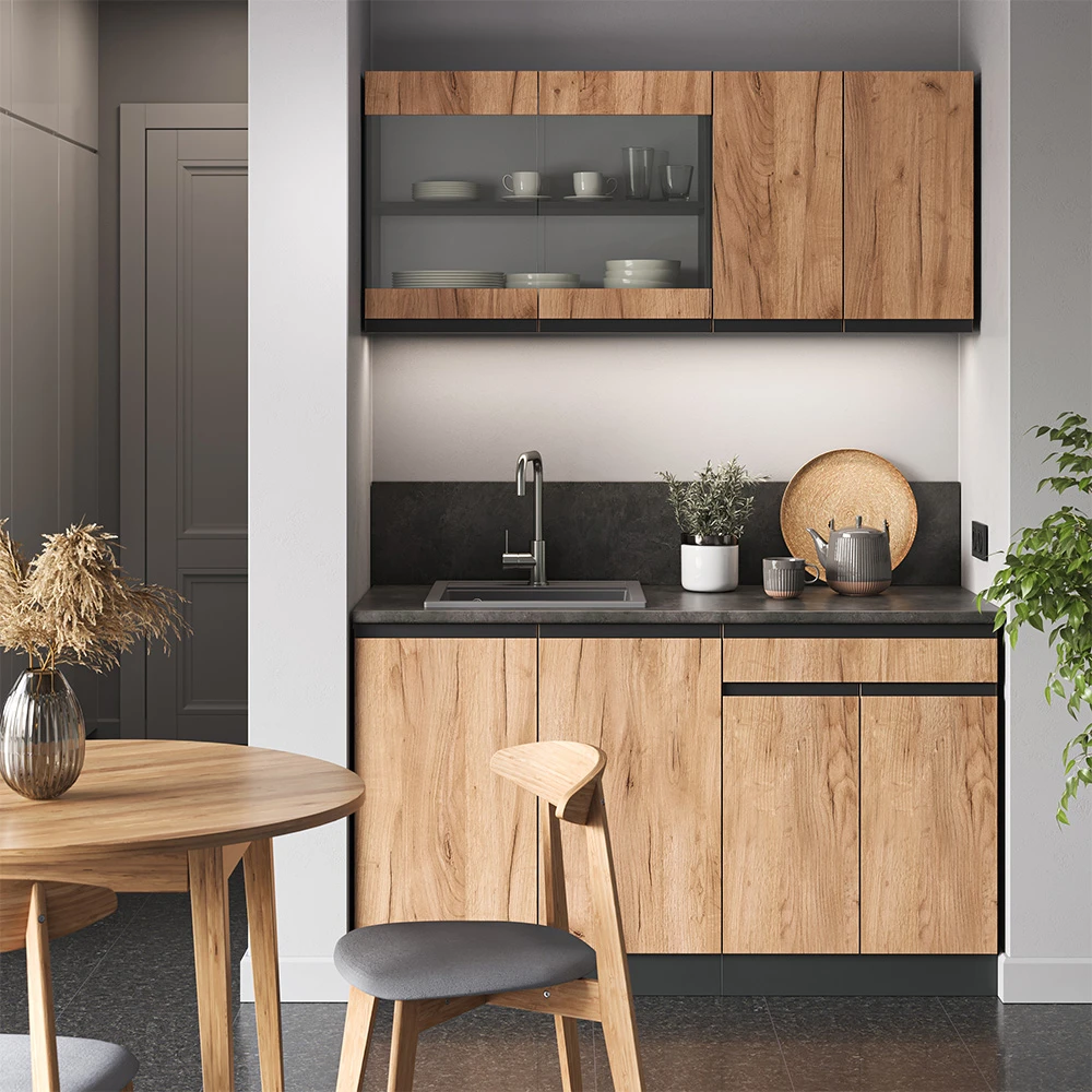 Sie sind auf der Suche nach einer Küche, die wenig Platz benötigt und trotzdem alles bietet, was das Herz begehrt? Dann ist die Singleküche R-Line (ohne Arbeitsplatte) genau das Richtige für Sie! Der Küchenblock, der als Mini-Einbauküche oder als Küchenzeile Single konfiguriert werden kann, ist modular aufstellbar und kann nach Belieben erweitert werden. So passt sich Ihre Singleküche optimal an Ihren Raum an. Die höhenverstellbaren Füße sorgen zudem für eine ergonomische Arbeitsplatzhöhe. Mit der R-Line Serie haben Sie die Komplettlösung für Ihre Küche gefunden. Dank der flexiblen und individuellen Gestaltungsmöglichkeiten ist sie nicht nur funktional, sondern auch ein echter Blickfang in Ihrem Zuhause. Gönnen Sie sich eine Singleküche, die perfekt zu Ihnen passt und erleben Sie, wie viel Freude Kochen und Genießen bereiten kann.
