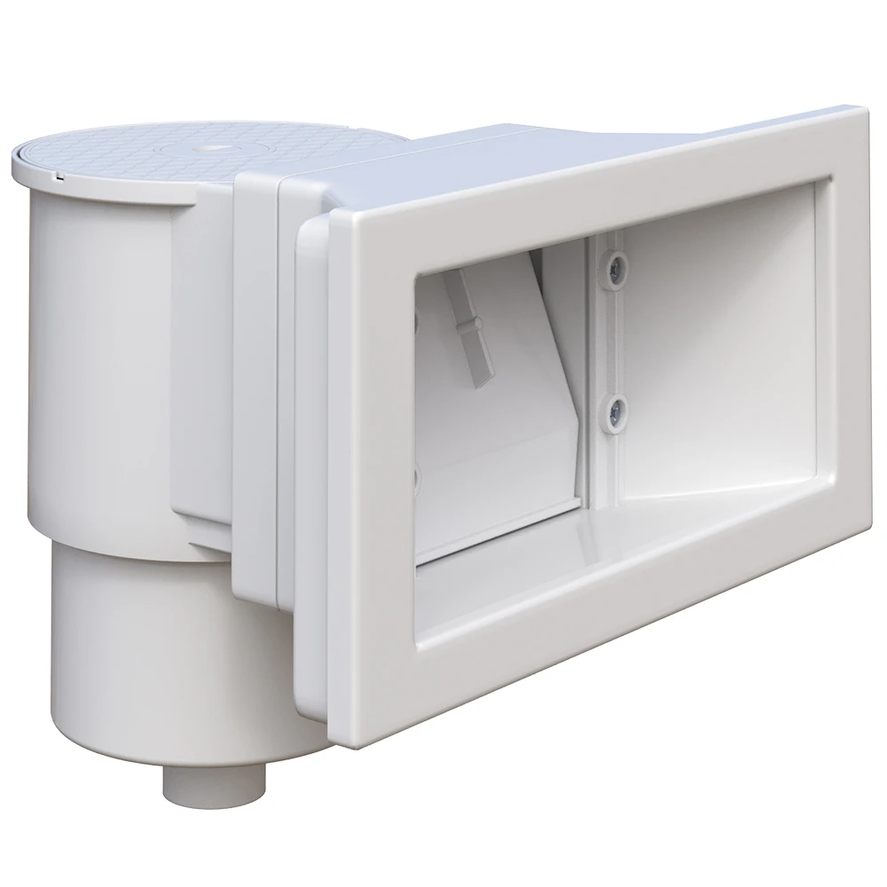 - Der Oberflächenskimmer ist mit einer flexiblen Klappe ausgestattet, die nur klares Wasser in den Pool fließen lässt und Insekten und Blätter fernhält.