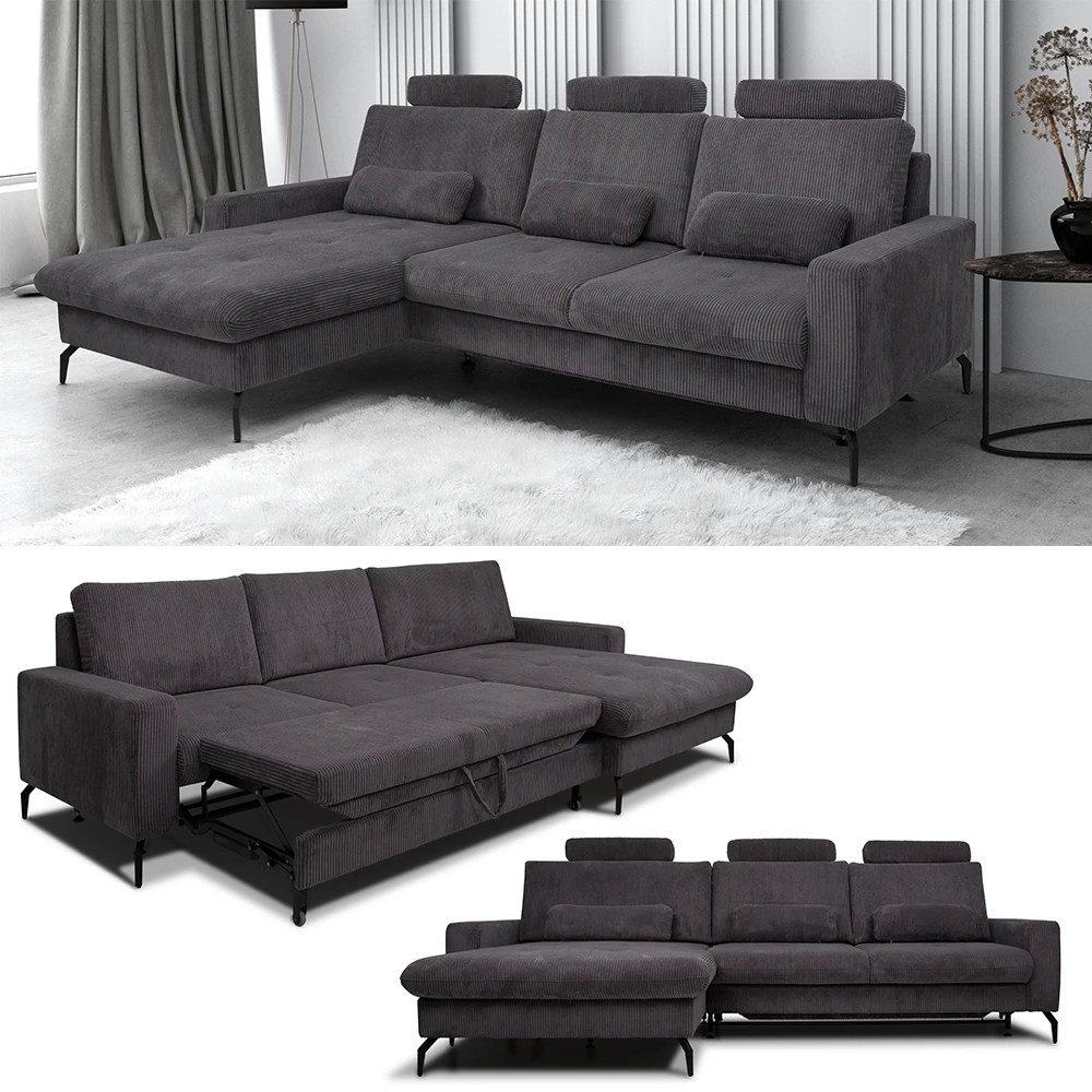 - Entdecke die vielseitige VitaliSpa Wohnlandschaft Beata – ein graues Ecksofa mit Schlaffunktion. Perfekt als gemütliches Schlafsofa oder stilvolle Couchgarnitur inklusive dekorativer Dekokissen.
