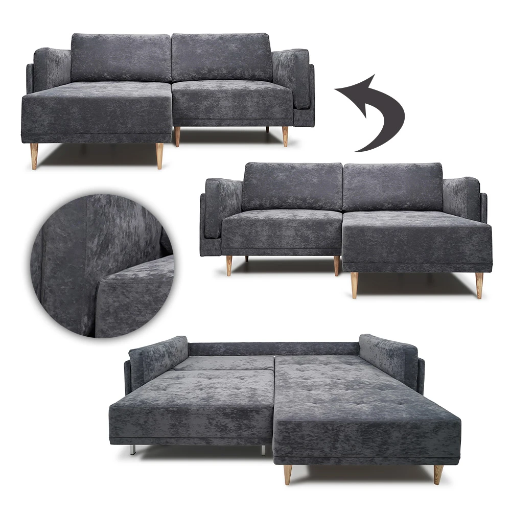 - Das Schlafsofa mit Bettkasten bietet eine praktische Aufbewahrungsmöglichkeit und lässt sich durch die eckige Form und die Einziehfunktion flexibel nutzen.
