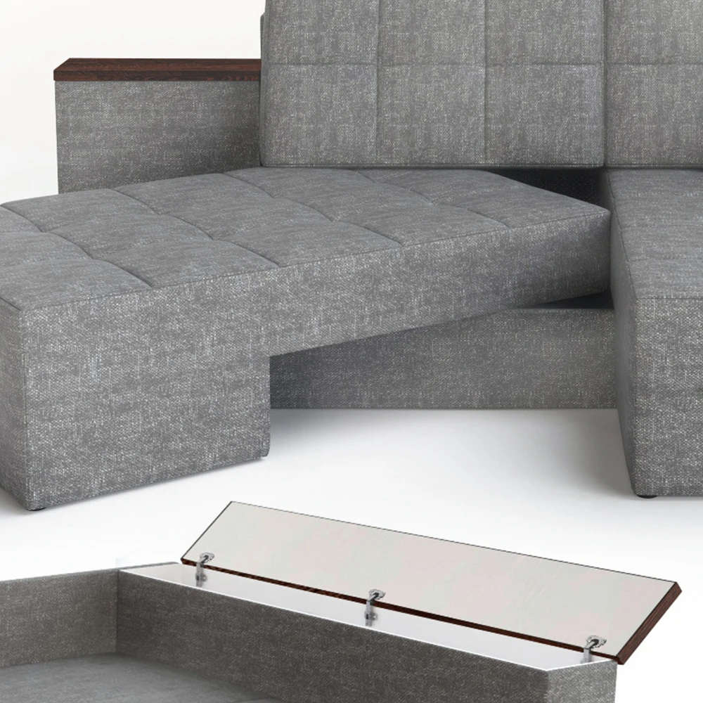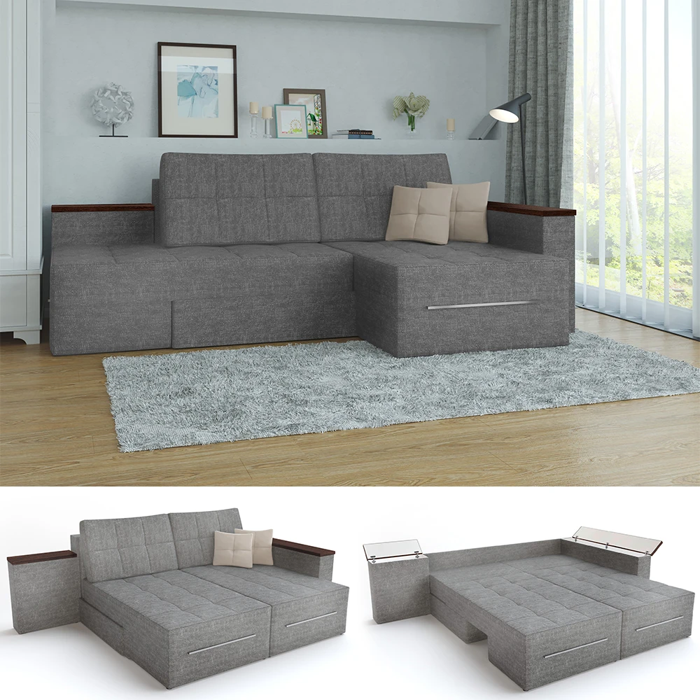 - Das graue Schlafsofa mit Bettkasten bietet vier Sitzmöglichkeiten sowie eine praktische Aufbewahrungsbox und eignet sich ideal für kleine Räume.