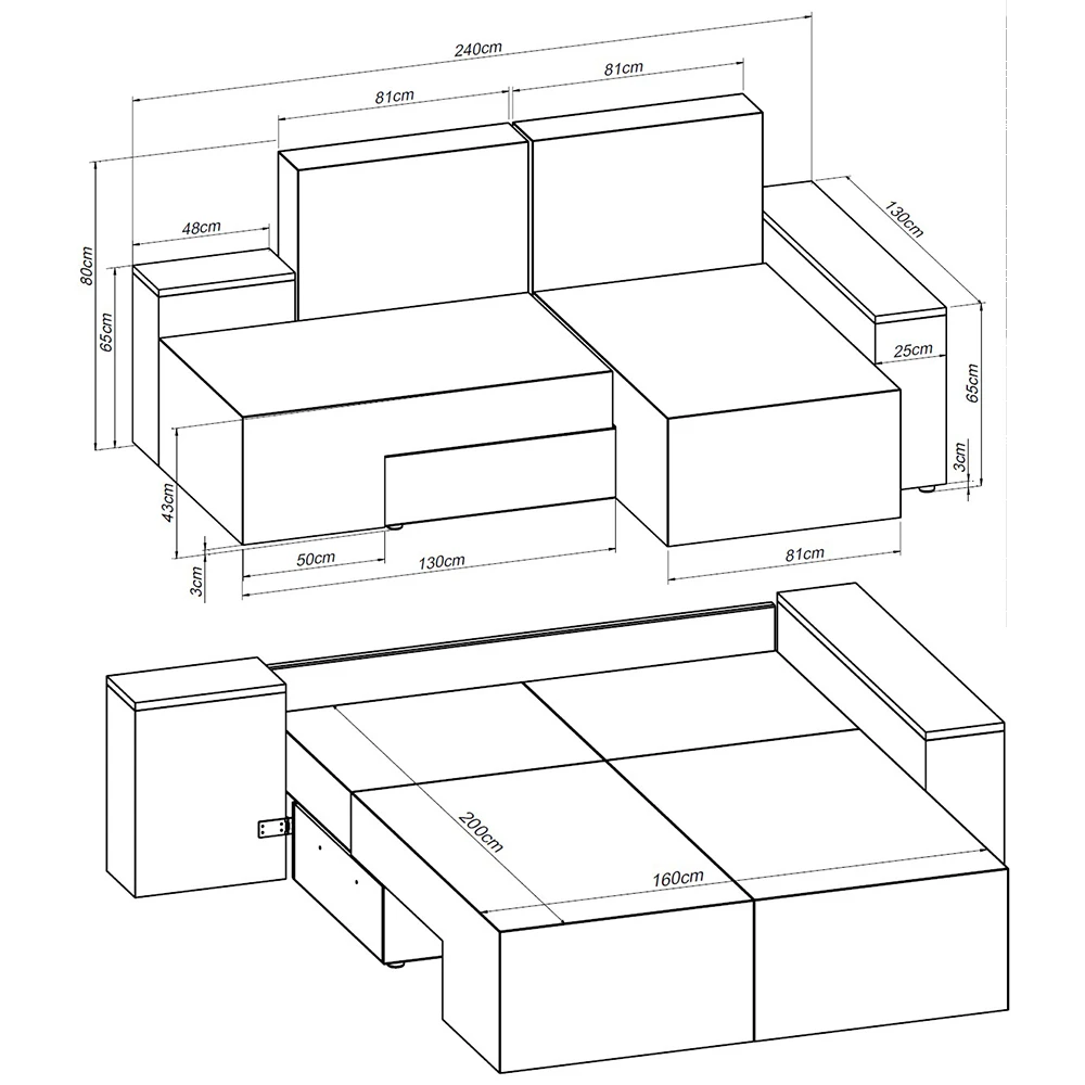 - MAßE: Das Ecksofa mit Schlaffunktion hat eine Breite von 160 cm, eine Höhe von 80 cm und eine Tiefe von 240 cm. Alle detaillierten Größen sind auf den Fotos angegeben.