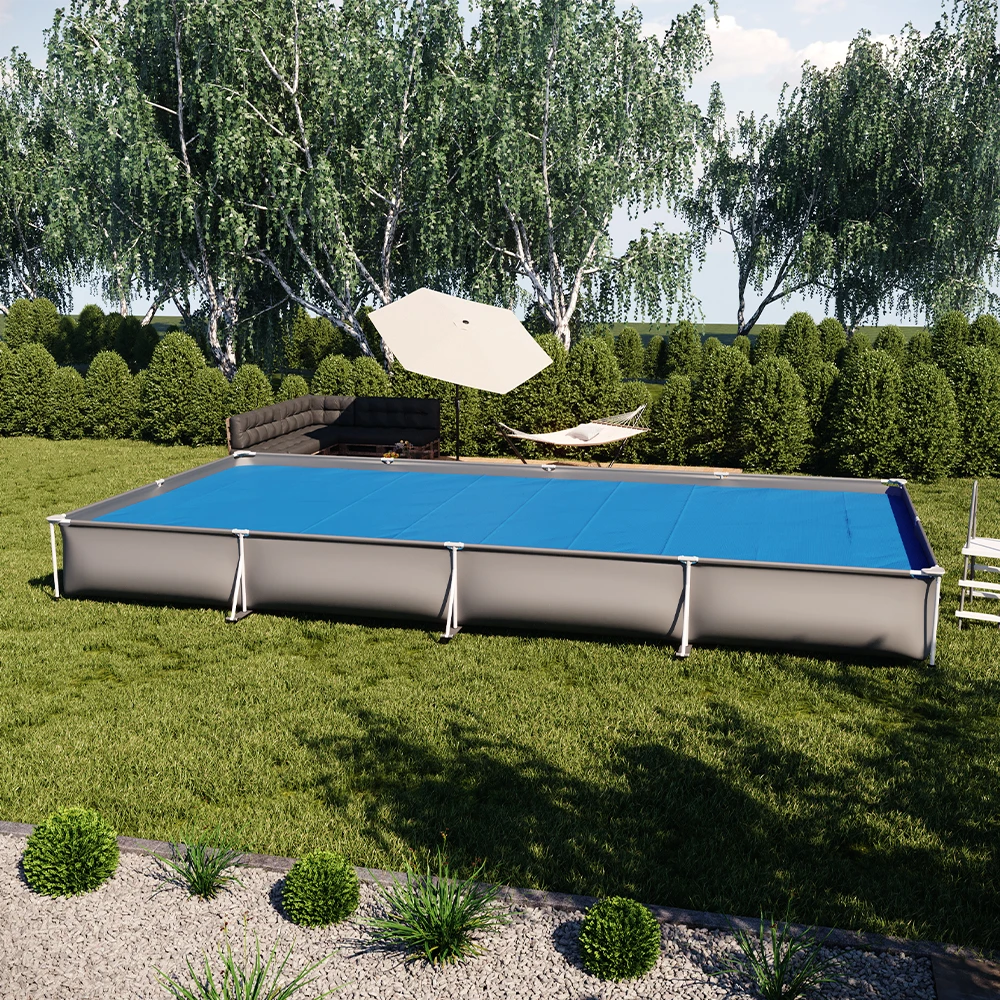 - Die Poolheizung schützt das Wasser vor Schmutz und ist witterungsbeständig. Sie kann einfach auf die Wasserfläche gelegt werden.