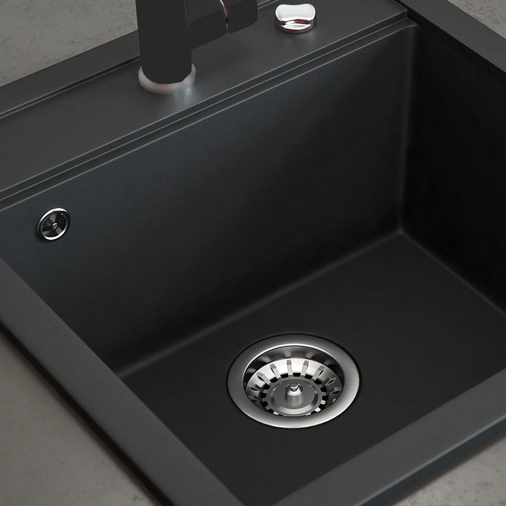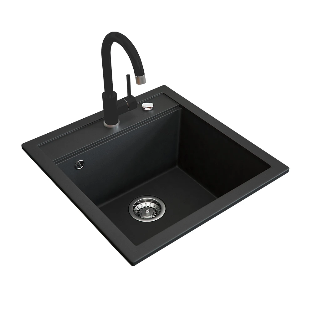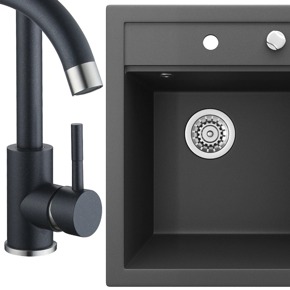 Mit der Spüle aus Granit und der dazu passenden Armatur wird das Spülen zum Vergnügen! Unsere widerstandsfähige Küchenspüle ist stoßsicher und resistent gegen Chemikalien. Die Armatur in Schwarz verleiht der Granitspüle ein elegantes Design, das Ihre Küche aufwertet. Die Armatur ist aus hochwertigem Edelstahl gefertigt und kann bis zu 360° gedreht werden, wobei sich der Hebel bis zu 45° neigt. Diese Spüle ist nicht nur funktional, sondern auch ästhetisch ansprechend. Verabschieden Sie sich von abgenutzten und unansehnlichen Spülen und heißen Sie die Spüle in Ihrer Küche willkommen!