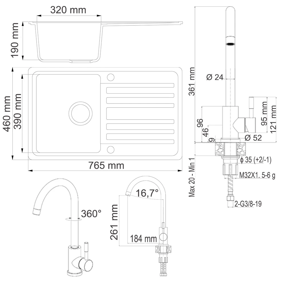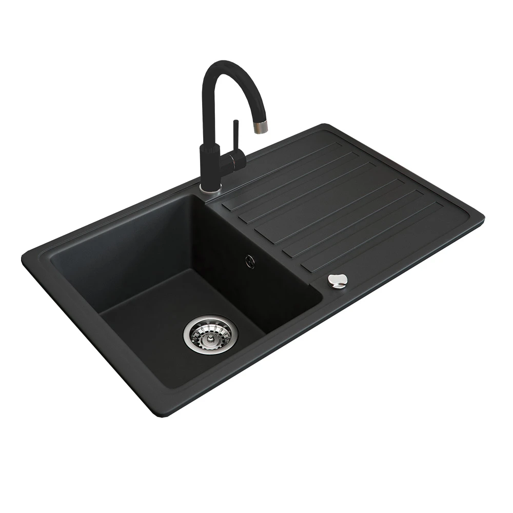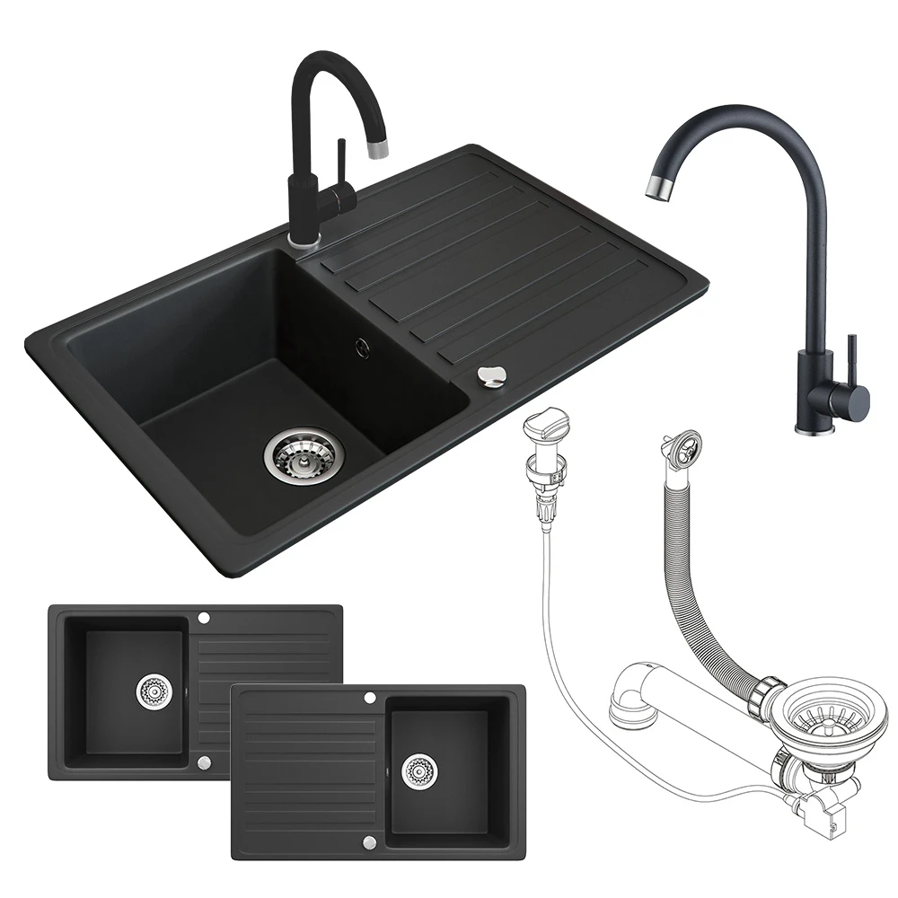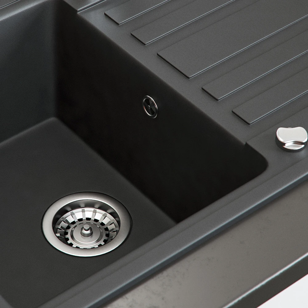 Was gibt es Schöneres, als in einer sauberen und ordentlichen Küche zu arbeiten? Dank unserer Granitspüle mit Trockenplatz und dazugehöriger Armatur wird das Spülen und Trocknen von Geschirr zum Kinderspiel. Die Spüle ist ausgestattet mit einem Abtropfflügel und einem widerstandsfähigen Granitmaterial. Diese Spüle ist nicht nur stoßsicher, sondern auch resistent gegenüber Chemikalien. Ob Sie die Spüle auf der rechten oder der linken Seite platzieren möchten, ist Ihnen überlassen – Sie können sich ganz auf Ihre Vorlieben einstellen. Die Armatur ist aus hochwertigem Edelstahl gefertigt und kann bis zu 360° gedreht werden, wobei sich der Hebel bis zu 45° neigt. Mit dieser Spüle inkl. passender Armatur wird Ihre Küchenarbeit zum Vergnügen. Gönnen Sie sich Qualität und Eleganz mit dieser Einbauspüle und Armatur!