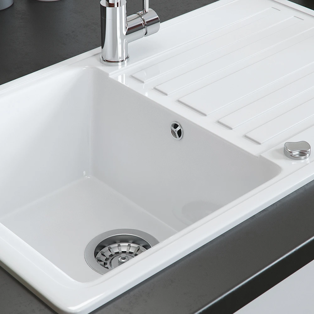 - Die runde Spüle aus Keramik in Weiß ist kratzfest und besticht durch ihre hohe Farbechtheit gegenüber Chemikalien. Perfekt für jeden Haushalt!