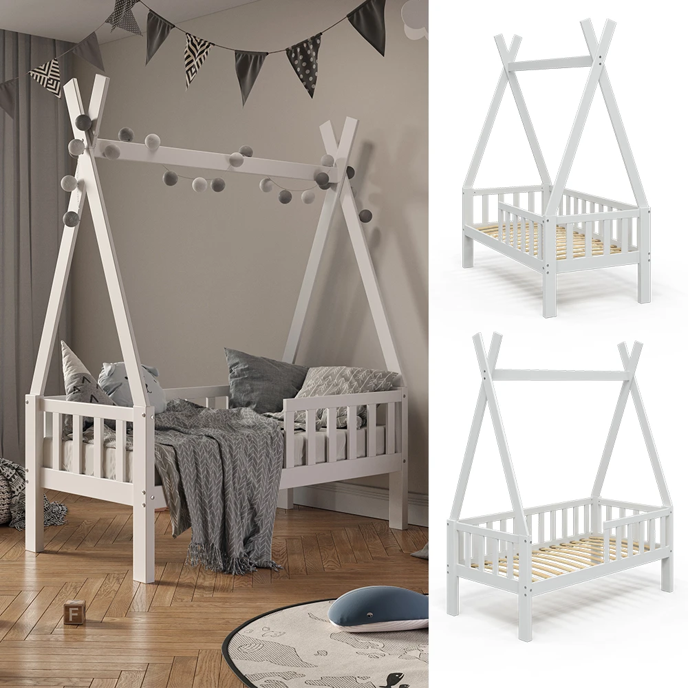 Das Tipi-Bett ist das perfekte Möbelstück für das Kinderzimmer! Mit seinem funktionellen und stilvollen Design dient es nicht nur als Bett, sondern auch als spannendes Spielbett und gemütlicher Rückzugsort. Die robusten Holzlatten sorgen für einen stabilen und sicheren Schlafplatz für Ihr Kind. Das Tipi-Bett lässt sich einfach mit anderen Möbelstücken kombinieren und verleiht jedem Kinderzimmer eine besondere Note. Lassen Sie sich von der Magie eines Tipis faszinieren und schenken Sie Ihrem Kind ein unvergessliches Schlaferlebnis!