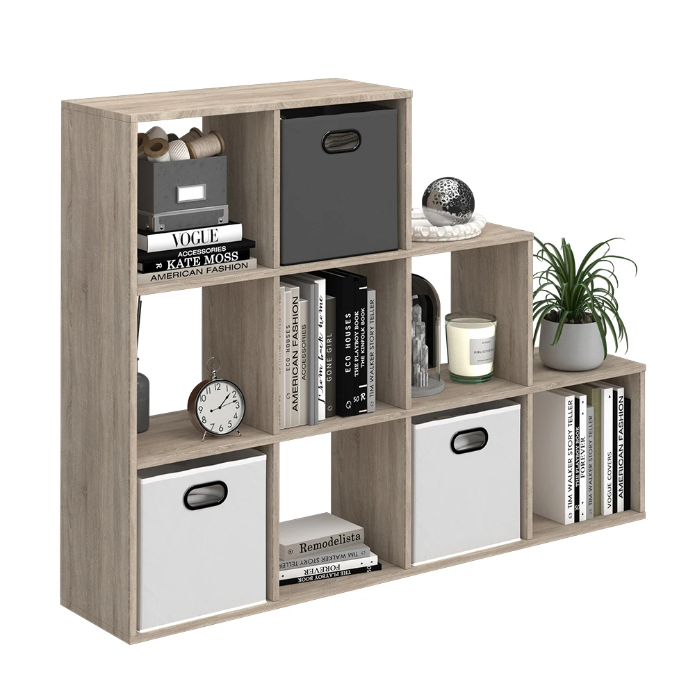 - Das stehende Bücherregal bietet neun offene Ablageflächen in leiterförmigem Design und Kastenregale mit 30×30 cm Größe.