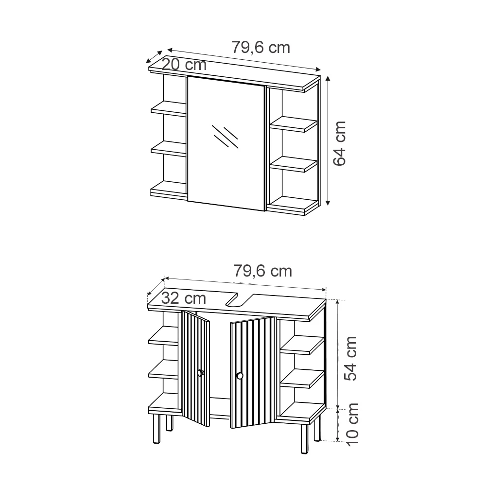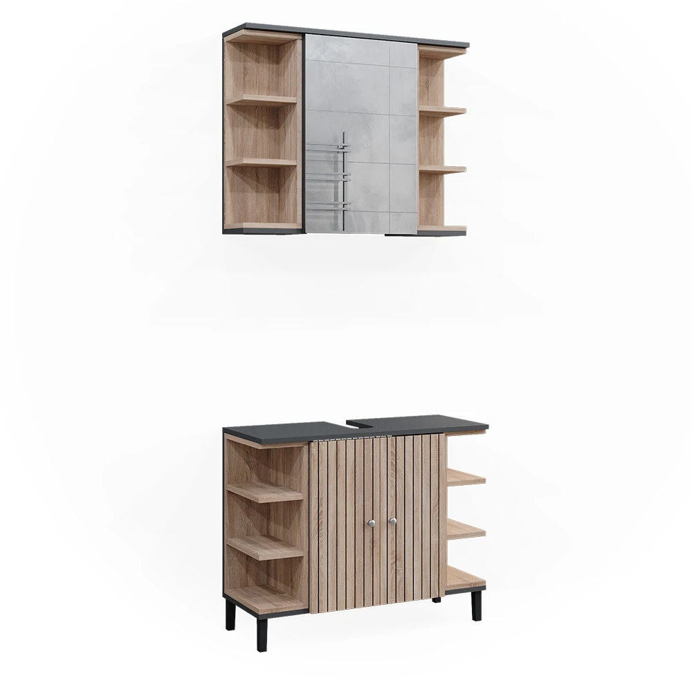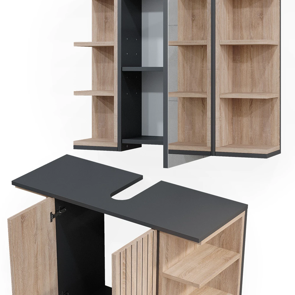 - MATERIAL: Das Set mit dem Spiegelschrank besteht aus pflegeleichter Spanplatte 16 mm, mit einer Melaminharzbeschichtung.