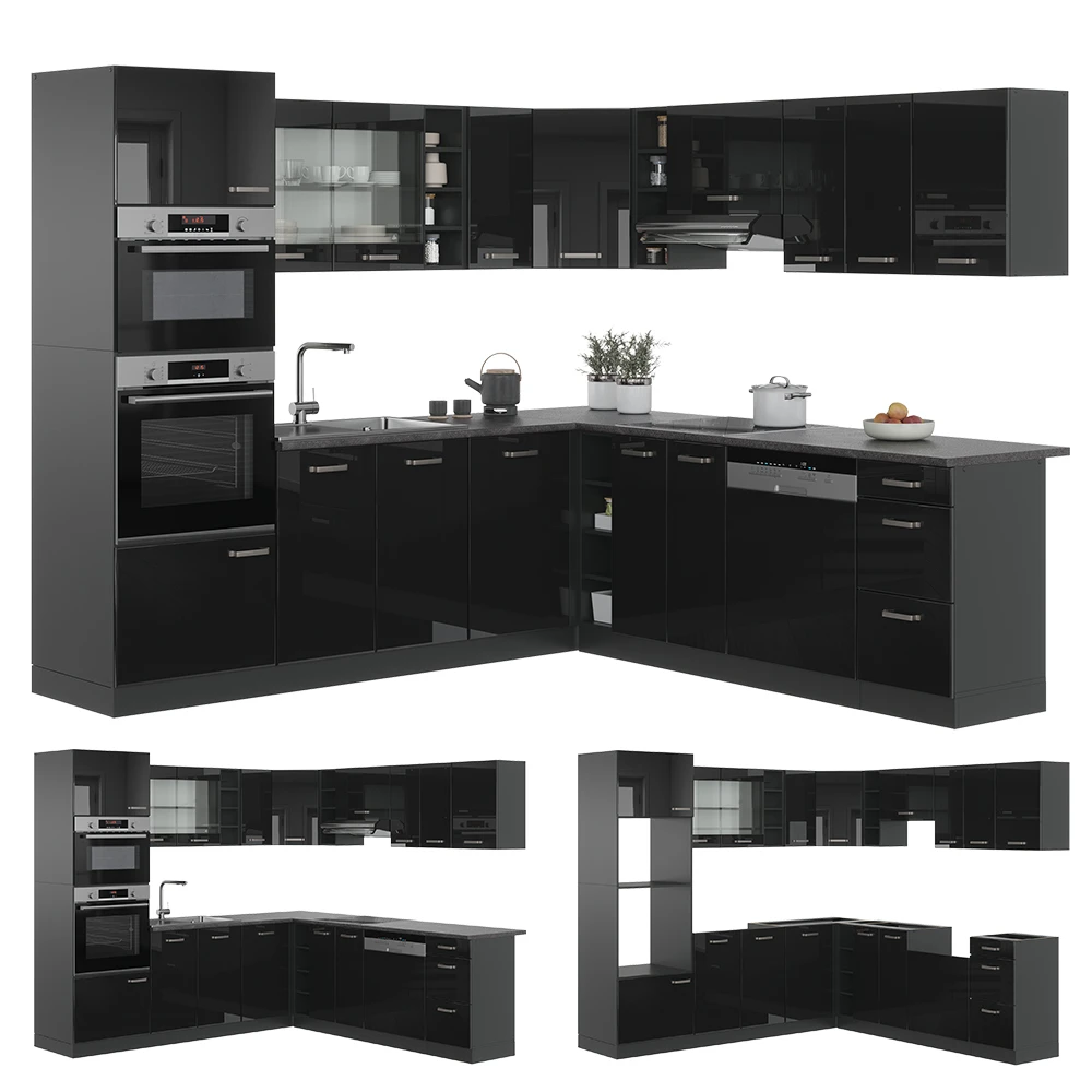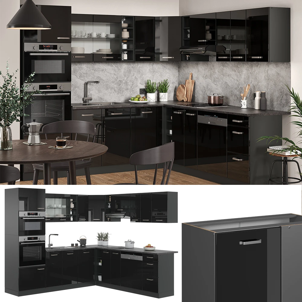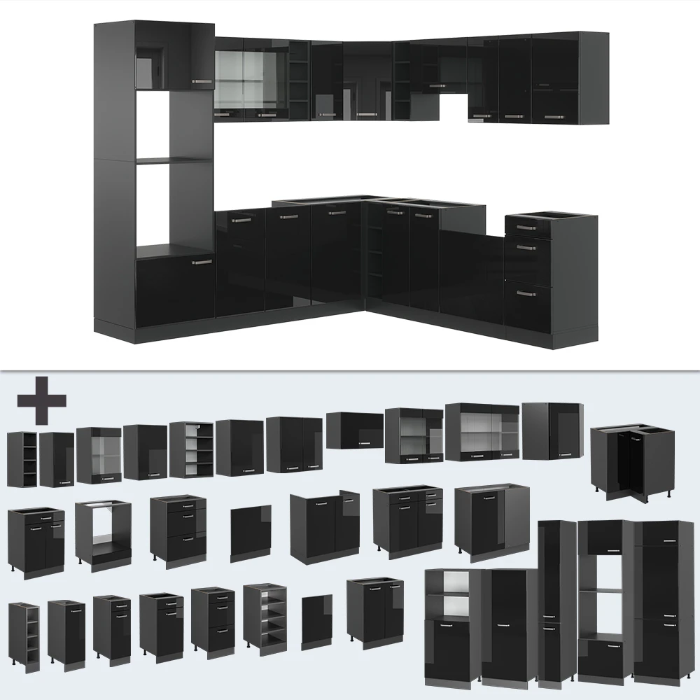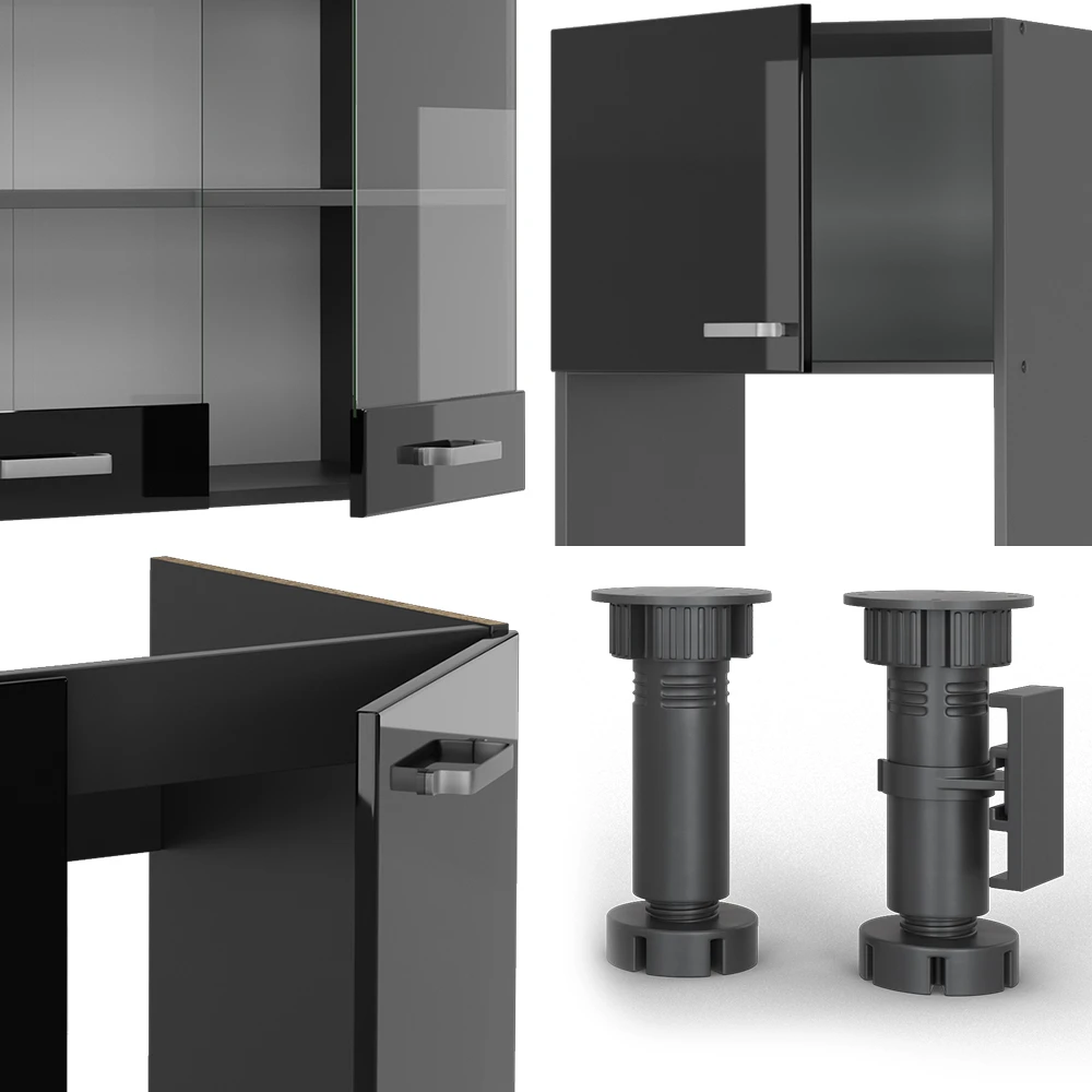 - Die Küchenzeile in L-Form bietet die Möglichkeit zur individuellen Umstellung und zum Bezug zusätzlicher Module. höhenverstellbare Füße sorgen für zusätzliche Flexibilität.