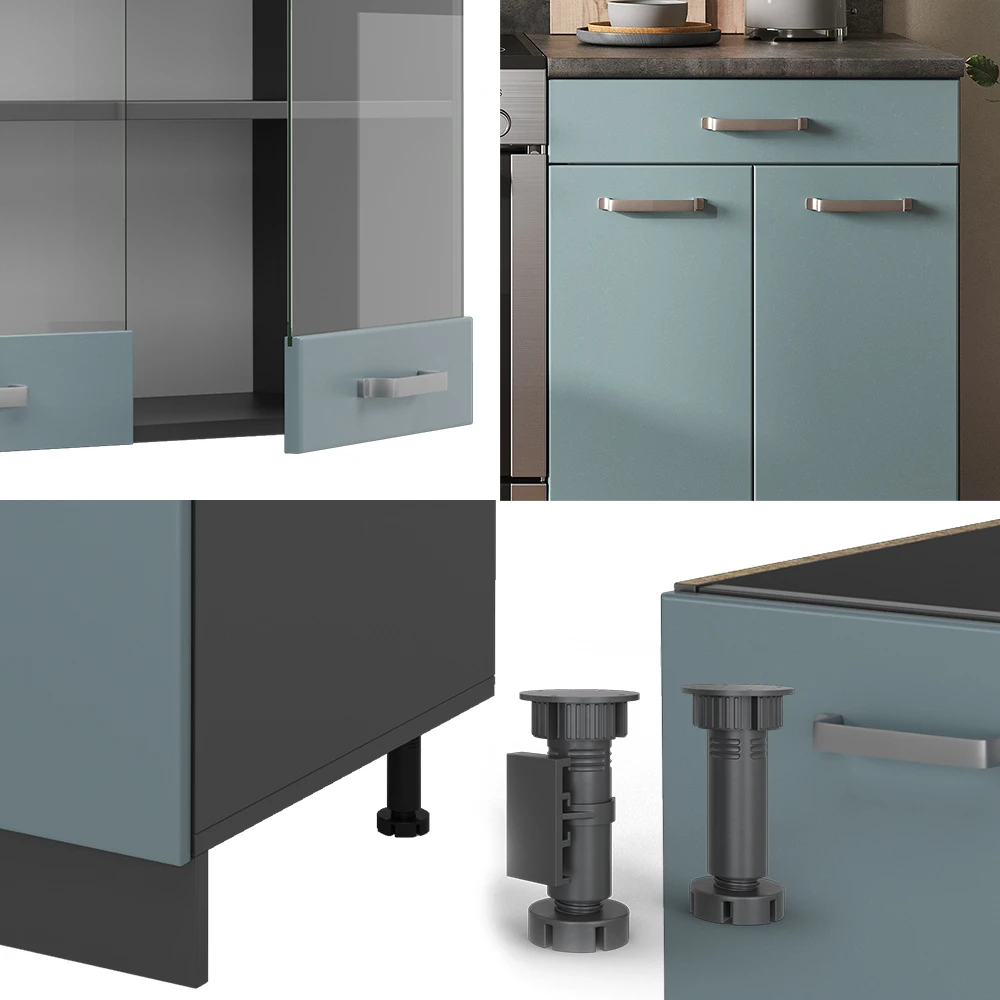 Die R-Line-Küchenzeile mit Arbeitsplatte ist die perfekte Komplettlösung für Ihre Küche. Diese Serie bietet eine Vielzahl von Konfigurationen und Farbkombinationen, um sicherzustellen, dass Sie die perfekte Passform für Ihren Raum finden. Die Module sind nach Belieben umstellbar und zusätzliche können jederzeit bezogen werden, um Ihre Küche zu erweitern und zu optimieren. Die höhenverstellbaren Füße sorgen für eine perfekte Passform in jeder Küche. Mit der R-Line-Küchenzeile können Sie Ihre Essenszubereitung in einem eleganten und gut organisierten Raum genießen. Gönnen Sie sich den Luxus einer schönen Küche und machen Sie sich bereit für kulinarische Abenteuer.