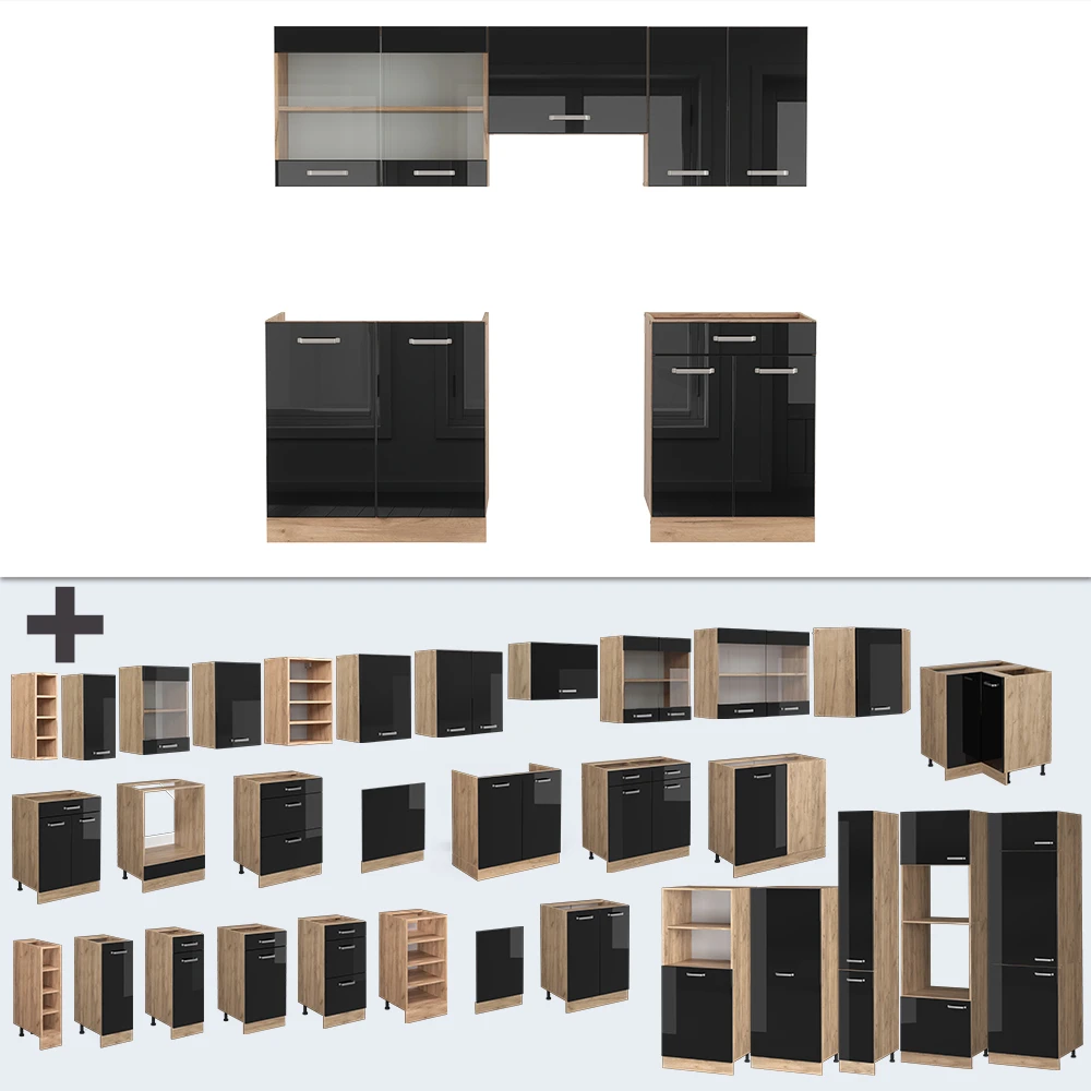 Die R-Line Küchenzeile (ohne Arbeitsplatte) bietet eine Komplettlösung für Ihre Küche. Der modulare Aufbau erlaubt es Ihnen, die Küchenmöbel nach Belieben umzustellen und zusätzliche Module hinzuzufügen. Die höhenverstellbaren Füße ermöglichen eine Anpassung an Ihre individuellen Bedürfnisse. Mit dieser Einbauküche bekommen Sie einen Küchenblock in einer Serie, die in verschiedenen Konfigurationen erhältlich ist. Ob klein oder groß, diese Küchenzeile ist für jeden Haushalt geeignet. Entscheiden Sie sich für Qualität und setzen Sie ein Statement in Ihrer Küche. Die R-Line Küchenzeile ist eine Investition, die sich lohnt und Ihnen viele Jahre Freude bereiten wird.