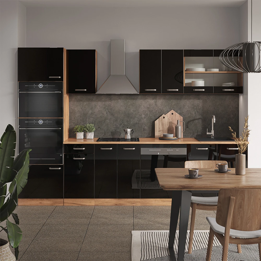 Schwarz Hochglanz/Goldkraft Eiche
