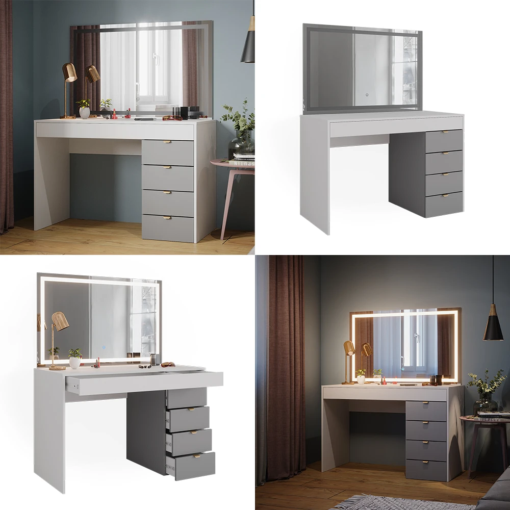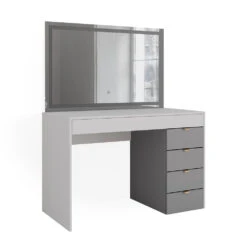 - Entdecken Sie den modernen Vicco Schminktisch Elise in Weiß-Grau für Ihr stilvolles Schlafzimmer. Mit LED-Spiegel und Schubladen – perfekt für Ihr Make-Up-Styling.