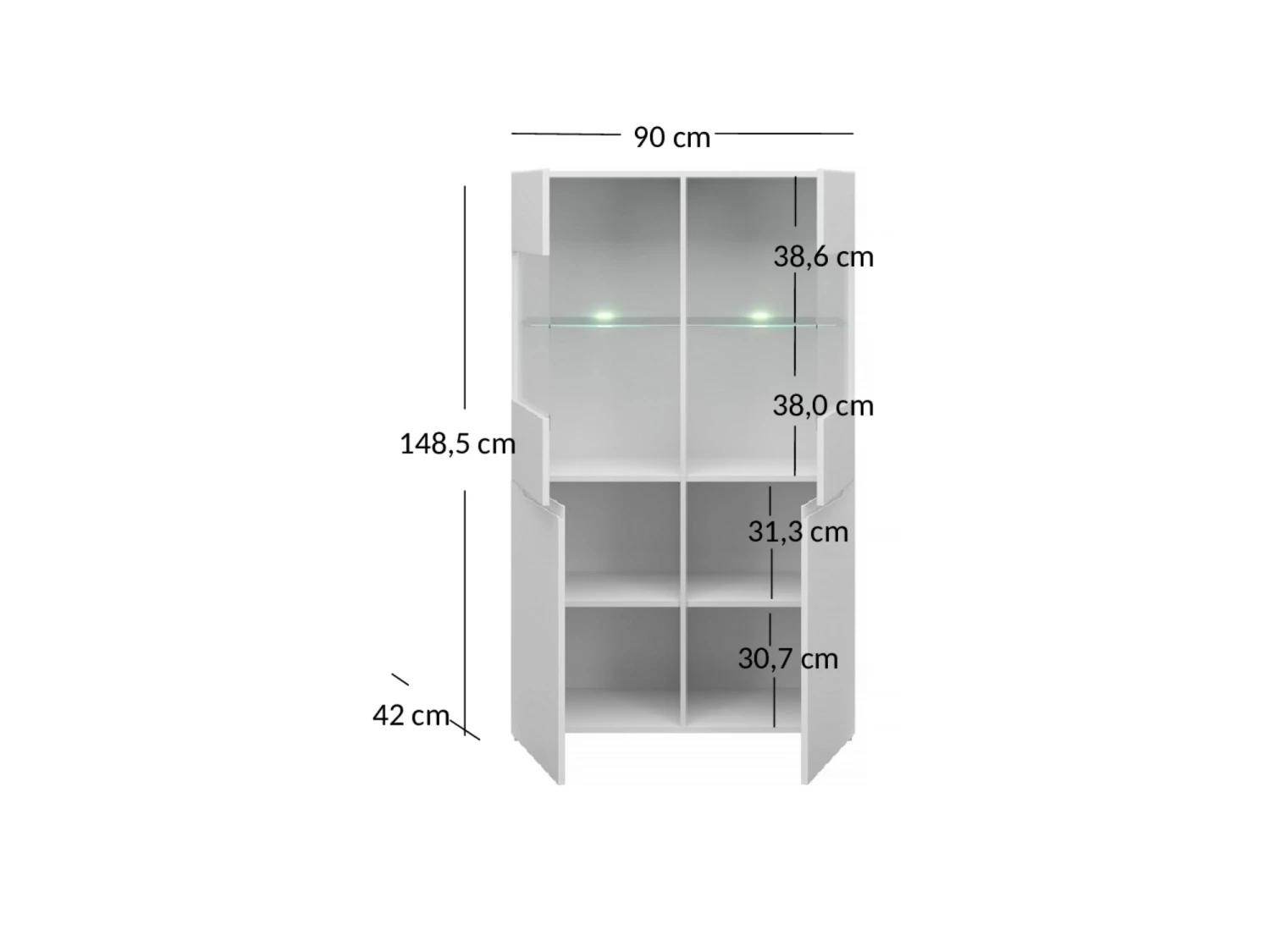 - MATERIAL: Die Glasvitrine besteht aus pflegeleichter Spanplatte 16 mm, mit einer Melaminharzbeschichtung. Einige Bestandteile des Artikels sind aus MDF gefertigt.