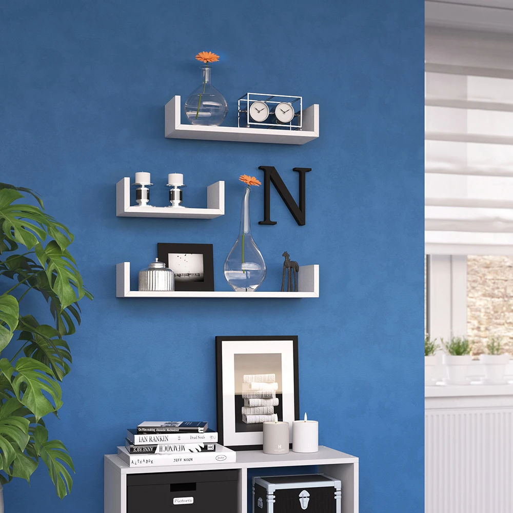 Holen Sie sich jetzt unser originelles und praktisches Wandregal-Set! Die 3 Regale sind perfekt für Bücher, Deko und alles, was Sie gerne aufbewahren möchten. Mit der mitgelieferten Wandhalterung können Sie das Regal einfach und sicher anbringen. Das offene Design des Regals sorgt dafür, dass Ihre Dinge immer griffbereit sind und sich zu jeder Zeit in Ihrem Wohnzimmer oder Büro gut präsentieren. Sie können das Wandregal-Set auch wunderbar mit anderen Möbelstücken kombinieren. Zögern Sie nicht mehr – bestellen Sie jetzt und verschönern Sie Ihre Wände!