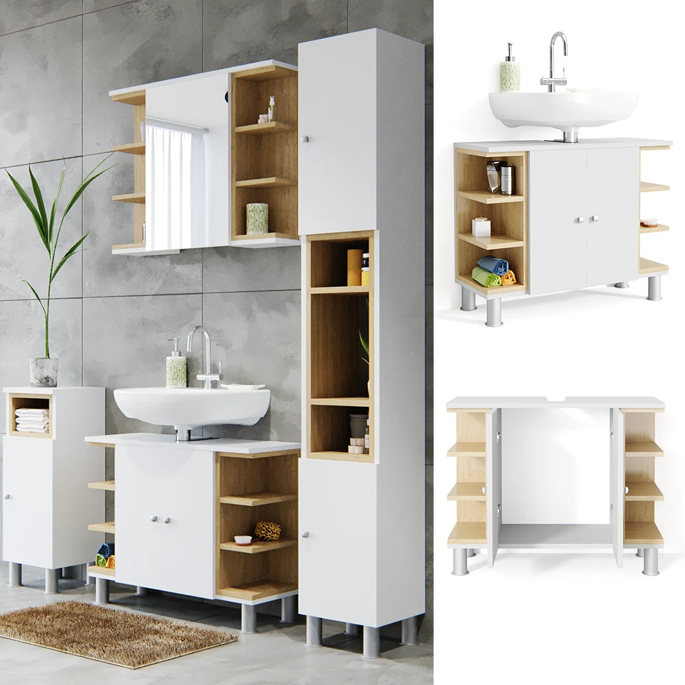 - MATERIAL: Der Badunterschrank besteht aus pflegeleichter Spanplatte 16 mm, mit einer Melaminharzbeschichtung.