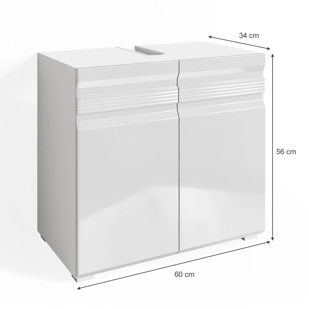 - MAßE: Der Unterschrank für das Badezimmer hat eine Breite von 60 cm, eine Höhe von 56 cm und eine Tiefe von 34 cm. Alle detaillierten Größen sind auf den Fotos angegeben.