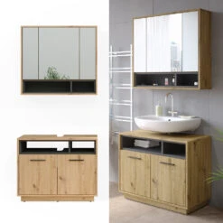 - Der Schrank mit seinem modernen Design ist eine praktische Lösung, um Ihr Badezimmer aufgeräumt und organisiert zu halten. Er verfügt über 3 Fächer, die Ihnen ausreichend Stauraum bieten.
